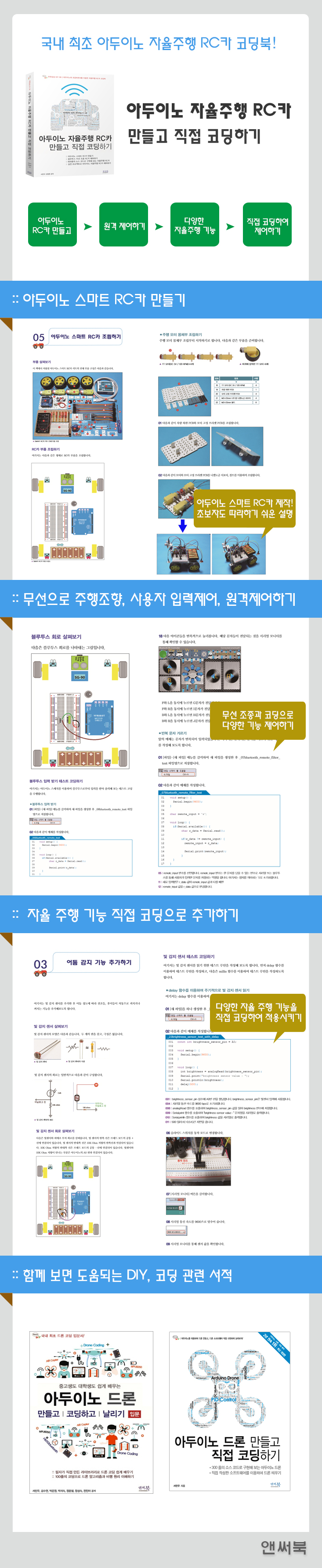 ÀÚÀ²ÁÖÇà RCÄ« ÇÁ·ÎÁ§Æ®¿¡¼´Â ÀüÁ¶µî, ÈĹ̵î Á¡µî, ¼ÒµîÇϱâ, ¹æÇâ Àüȯ½Ã ÈĹ̵î ÀÚµ¿ Á¡¸êÇϱâ, ¾ß°£¿¡ ÀüÁ¶µî, ÈĹ̵î ÀÚµ¿ Á¡µîÇϱâ, ÃÊÀ½ÆÄ ¼¾¼·Î ¹°Ã¼ °¨ÁöÇϱâ, ¹°Ã¼ °¨Áö½Ã ÀÚµ¿ Á¤ÁöÇÏ°í ¿ìȸÇϱ⠵îÀÇ ±â´ÉÀ» Á÷Á¢ ÄÚµùÀ¸·Î µû¶óÇÒ ¼ö ÀÖµµ·Ï ¼³¸íÇÏ¿´½À´Ï´Ù.