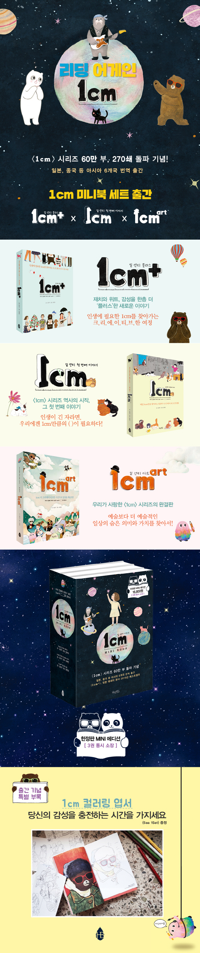 2013³â Ãâ°£ ÀÌÈÄ, ¡®1cm µ¹Ç³¡¯À» ÀÏÀ¸Å°¸ç ±×¸²¿¡¼¼ÀÌ ½ÃÀå¿¡ µ¶º¸ÀûÀÎ ÀÔÁö¸¦ ±¸ÃàÇØ ¿Â <1cm> ½Ã¸®Áî°¡ ¡ºÇÑÁ¤ÆÇ MINI ¿¡µð¼Ç¡»À¸·Î Ãâ°£µÇ¾ú´Ù. 60¸¸ µ¶ÀÚ°¡ °ø°¨ÇÏ°í »ç¶ûÇÑ °ËÁõµÈ º£½ºÆ®¼¿·¯ ¡¶1cm+(ÀÏ ¼¾Æ¼ Ç÷¯½º)¡·,¡¶1cm ù ¹øÂ° À̾߱⡷,¡¶1cm art(ÀÏ ¼¾Æ¼ ¾ÆÆ®)¡· ¼¼ ±ÇÀ» ÇÕ¸®ÀûÀÎ °¡°ÝÀ¸·Î µ¿½Ã¿¡ ¼ÒÀåÇÒ ¼ö ÀÖ´Â ÁÁÀº ±âȸÀÌ´Ù.