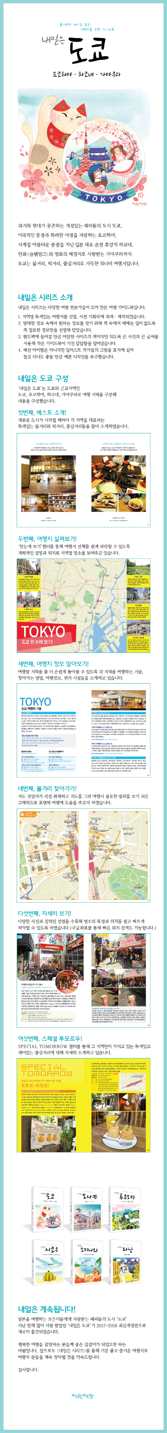 ¡º³»ÀÏÀº µµÄì – ¿äÄÚÇϸ¶, ÇÏÄÚ³×, °¡¸¶Äí¶ó (2017~2018 ÃֽŰ³Á¤ÆÇ)¡»Àº ¿©ÇàÀ» »ç¶ûÇÏ´Â Àü¹®°¡µéÀÌ ¸ð¿© 4³â°£ ÃëÀçÇÏ°í ¼öÁýÇØ ¿Â ÀÚ·á Áß¿¡¼ ²À ÇÊ¿äÇÑ Á¤º¸¸¸À» ¾ö¼±ÇØ ¾ËÂ÷°Ô ´ã¾Æ³½ °¡À̵åºÏÀÌ´Ù. µµÄì, ¿äÄÚÇϸ¶, ÇÏÄÚ³×, °¡¸¶Äí¶ó∙¿¡³ë½Ã¸¶¿¡¼ ²À °¡ºÁ¾ß ÇÒ ´ëÇ¥¸í¼Ò¿Í ²À ¸Ô¾îºÁ¾ß ÇÒ ¸í¹°À½½ÄÀº ¹°·Ð µµÄìÀÇ »õ·Î¿î ·£µå¸¶Å©! µµÄì ½ºÄ«ÀÌÆ®¸®, ¸¸È¿Í ¾Ö´Ï¸ÞÀÌ¼Ç ¸¶´Ï¾ÆµéÀÇ Ãµ±¹! ¾ÆÅ°ÇϹٶó Ãò¿Àµµ¸® Åõ¾î, ÀϺ» ÃÖ´ëÀÇ ¾î½ÃÀå! Ã÷ŰÁö ½ÃÀå µÑ·¯º¸±â, µµÄì ¼¹ÎÀ½½Ä ¸óÀÚ¾ßŰ Áñ±â±â, ²Þ°ú ȯ»óÀÇ ¼¼°è! µðÁî´Ï·£µå, µµÄì ¾ß°æ ¾îµð¼ º¼±î, ¿äÄÚÇϸ¶ ¾ß°æ º£½ºÆ® ºäÆ÷ÀÎÆ® µî ±× Áö¿ª¿¡¼¸¸ Áñ±æ ¼ö ÀÖ´Â ´Ù¾çÇÑ Ã¼ÇèȰµ¿À» SPECAIL TOMORROW Å׸¶·Î ±¸¼ºÇØ ¼Ò°³ÇÏ¿´´Ù. ±ÛÀÚ·Î »©°îÇÑ ¹«°Ì°í ¹æ´ëÇÑ °¡À̵åºÏ¿¡ ÁöÄ£ À̵éÀ» À§ÇØ ÇÑ ¼Õ¿¡ µé¾î¿À´Â Ã¥ »çÀÌÁî¿¡ ¿©ÇàÀÇ ¼³·½°ú Áñ°Å¿òÀ» ´õÇØÁÙ »ý»ýÇÑ »çÁø°ú ²À ÇÊ¿äÇÑ Á¤º¸¸¸À» ¼±º°ÇØ ´ã¾Æ³Â´Ù.