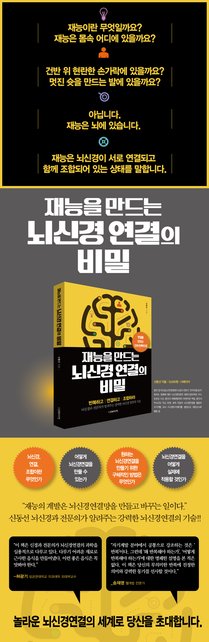 ¿ì¸®ÀÇ »ý°¢, ½Ç·Â, Àç´É, ´À³¦, °¨°¢µéÀº ¸ðµÎ ³ú¿¡¼ ÀϾ´Ï´Ù. ³ú½Å°æ¿¬°áÀº ¡®³ª¡¯¶ó´Â Á¸Àç, ±× ÀÚü¶ó°í ÇÒ ¼ö ÀÖ½À´Ï´Ù. ³ú½Å°æ¿¬°áÀÌ ¹ßÈµÇ¾î °¨Á¤À» ¸¸µé°í, °ñÇÁ ½ºÀ®À» ¸¸µé°í, ÁýÁß·ÂÀ» ¹ßÈÖÇϰí, ±ÛÀ» ¾²°í, Ã¥À» ÀнÀ´Ï´Ù. Áï °¨Á¤À» ¼øÈÇϰí, °ñÇÁ ½ºÀ®À» ¸¸µé°í, ÁýÁß·ÂÀ» Ű¿ì°í, ±ÛÀ» Àß ¾²°í, Ã¥À» È¿°úÀûÀ¸·Î ÀÐÀ¸·Á¸é ³ú½Å°æ¿¬°á »óŸ¦ ¹Ù²Ù¸é µË´Ï´Ù. ³ªÀÇ ¸ðµç °ÍÀº ³ú½Å°æ¿¬°á »óÅÂÀ̱⠶§¹®ÀÔ´Ï´Ù. ¡®³»°¡ º¯ÇÑ´Ù¡¯´Â °ÍÀº ¡®³ú½Å°æ¿¬°á »óŰ¡ º¯ÇÑ´Ù¡¯´Â ÀǹÌÀÔ´Ï´Ù. °¨Á¤À», °ñÇÁ¸¦, ÁýÁßÀ», ±ÛÀ», µ¶¼¸¦ Á¦´ë·Î Çϵµ·Ï º¯ÈÇÒ ¼ö ÀÖ½À´Ï´Ù. ¸ðµç º¯ÈÀÇ Á߽ɿ¡ ³ú°¡ ÀÖ½À´Ï´Ù. ³ú½Å°æ¿¬°áÀÇ º¯È´Â ±× º¯ÈÀÇ ÇÙ½ÉÀÔ´Ï´Ù.