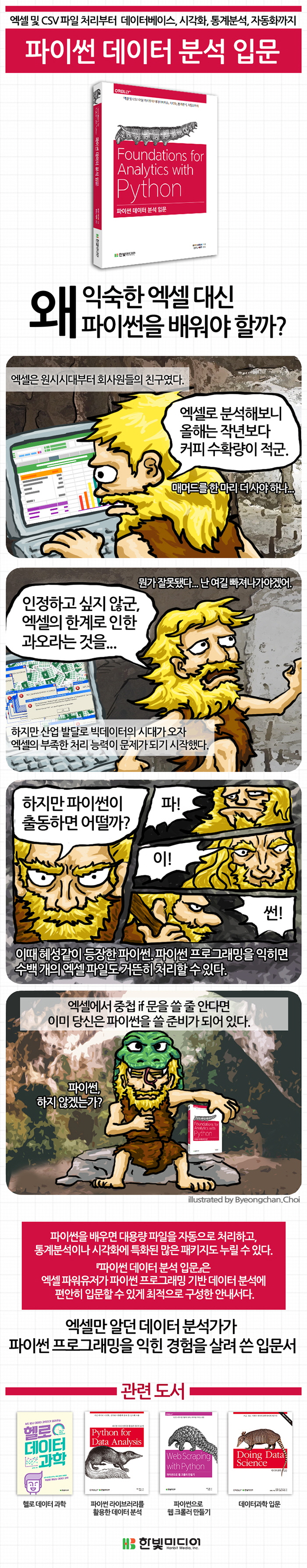 ¿¢¼¿Àº½±°íÁ÷°üÀûÀÌÁö¸¸¼ö¹é°³ÀÇÆÄÀÏÀ»´Ù·ç±â´Â¹«¸®´Ù. ÆÄÀ̽ãÀ»ÀÌ¿ëÇϸ鿢¼¿ÀÇÇѰ踦³Ñ¾î´Ù¾çÇÑÇü½ÄÀǵ¥ÀÌÅ͸¦°¡°øÇϰí¼ö¸¹ÀºÆÄÀÏÀ»ºÐ¼®ÇÒ¼öÀÖ´Ù. ÀÌÃ¥ÀºÀϹÝÀÎÀ»À§ÇÑÆÄÀ̽ã±âÃʺÎÅÍ CSV, ¿¢¼¿, µ¥ÀÌÅͺ£À̽ºÀǵ¥ÀÌÅ͸¦ºÐ¼®ÇÏ´ÂÆÄÀ̽ãÄÚµåÀÛ¼º¹ý±îÁöÄ£ÀýÇϰԾ˷ÁÁØ´Ù. ÆÄÀÏÆÄ½Ì, ±×·ìÈ, Åë°è»êÃâ, ½Ã°¢È¿¡ÇÊ¿äÇѰ¢Á¾ÆÄÀ̽ã¶óÀ̺귯¸®µµÇÔ²²¾Ë¾Æº»´Ù. µ¥ÀÌÅͺм®°í¼ö°¡µÇ°Ú´Ù´ÂÀÇÁö°¡ÀÖ´Ù¸éÇÁ·Î±×·¡¹Ö°æÇèÀºÇÊ¿ä¾ø´Ù.