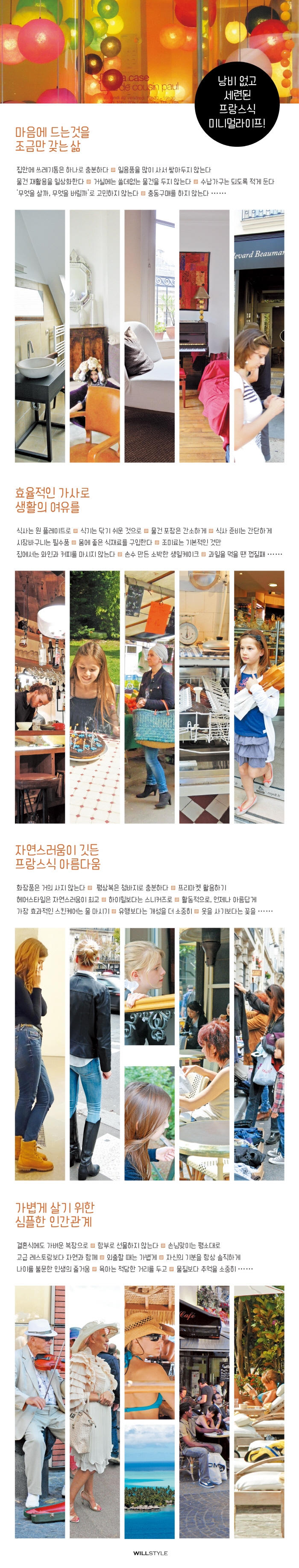 ÀúÀÚ´Â ÇÁ¶û½ºÀεéÀÇ »ýȰ¿¡¼ º¸°í ¹è¿ö »î¿¡ µµ¿òÀÌ µÈ »ýȰÀÇ ÁöÇý¿Í ¿©À¯·Î¿î ÀÏ»ó»ýȰÀ» 40°¡Áö·Î Á¤¸®ÇØ ¼Ò°³ÇÑ´Ù. À̸¦ ÅëÇØ ³¶ºñ ¾ø°í ¼¼·ÃµÈ »îÀ» ¿µÀ§ÇϰíÀÚ ÇÏ´Â µ¶Àڵ鿡°Ô µµ¿òÀ» ÁÖ°í, ÀÚ¿¬ÀÇ ÀϺΰ¡ µÇ¾î ¹«¸®ÇÏÁö ¾Ê°í ÇÕ¸®ÀûÀ¸·Î »ì¾Æ°¡´Â ÇÁ¶û½º »ç¶÷µéÀÇ Âü¸ð½ÀÀ» º¸¿©ÁØ´Ù.