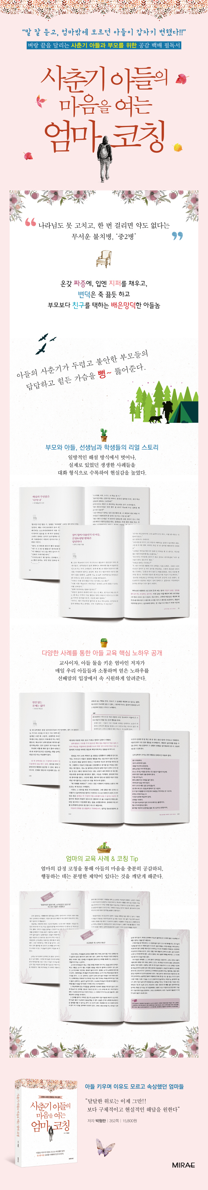 ÀúÀÚÀÎ ¹ÚÇü¶õ ¼±»ý´ÔÀº ÁßÇб³ ±³»çÀÌÀÚ, ¾Æµé µÑÀ» Ű¿î ¾ö¸¶ÀÌ´Ù. 30³âÀÌ ³Ñ´Â ±³À° ÇöÀå °æÇèÀ» ¹ÙÅÁÀ¸·Î, ³²ÇлýÀÌ Çб³»ýȰ¿¡¼ ºÎµúÈ÷´Â ¹®Á¦¸¦ ºñ·ÔÇØ °¢ °¡Á¤¿¡¼ ¾ÆµéÀ» Ű¿ì¸ç °Þ´Â ½ÇÁ¦ »ç·ÊµéÀ» ¼Ò°³Çϰí, °¢ »óȲ¸¶´Ù ¾î¶»°Ô Ç®¾î°¡¾ß ÇÒÁö ¾Ë·ÁÁØ´Ù.