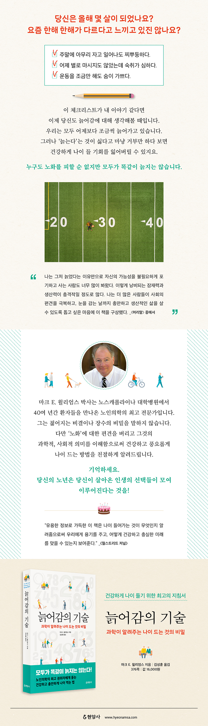 ÀÌ Ã¥Àº ³ëȰ¡ ƯÁ¤ ¹æ½ÄÀ» µû¶ó ÀÌ·ç¾îÁ®¾ß ÇÑ´Ù°í ÁÖÀåÇÏÁöµµ, ³ëÈÀÇ ±âÁØÀ» »õ·Ó°Ô Á¦½ÃÇÏÁöµµ ¾Ê´Â´Ù. ±×º¸´Ù´Â ´ç½ÅÀÌ ³ëÀÎ Â÷º°À» ¹°¸®Ä¡°í, °³ÀÎÀûÀÎ ¼ºÀåÀÇ ±âȸ¸¦ ¹ß°ßÇϸç, ³«°üÀûÀ̰í Áñ°Å¿î ¸¶À½À¸·Î ÀÚ½ÅÀÇ ³ëÈ¿Í ¸¶ÁÖÇÒ ¼ö ÀÖ°Ô µµ¿ÍÁÙ ½Ç¿ëÀûÀ̰í öÇÐÀûÀÎ ÅëÂûÀ» ÀüÇÏ·Á ÇÑ´Ù. ÀÌ Ã¥Àº ³ëÈ¿Í ÇÔ²² ã¾Æ¿À´Â ´Ù¾çÇÑ °æÇèÀ» °üÂûÇÔÀ¸·Î½á ¿ì¸®°¡ Àΰ£À¸·Î¼ °®´Â ³»ÀçÀû °¡Ä¡¸¦ Âù¾çÇÏ·Á ÇÑ´Ù. À̰ÍÀº ½Ã°£ÀÌ Èê·¯µµ °áÄÚ ³°Áö ¾Ê´Â °¡Ä¡´Ù.(º»¹® 10ÂÊ)