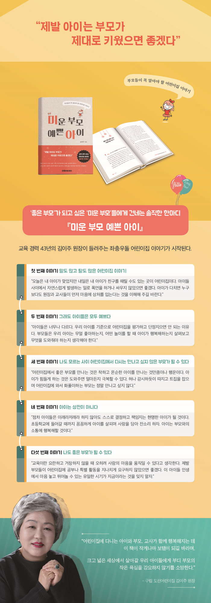 ¡°¾ÆÀ̵éÀº ³Ê¹«³ª ´Ù¸£´Ù. ¿ì¸® ¾ÆÀ̸¦ ±âÁØÀ¸·Î ¾î¸°ÀÌÁýÀ» Æò°¡ÇÏ°í ´ÜÁ¤ÁöÀ¸¸é ¾È µÇ´Â ÀÌÀ¯´Ù. ºÎ¸ðµéÀº ¿ì¸® ¾ÆÀÌ´Â ¹«¾ó ÁÁ¾ÆÇÏ´ÂÁö, ¾î¶² ³îÀ̸¦ ÇÒ ¶§ ¾ÆÀ̰¡ Çàº¹ÇØÇÏ´ÂÁö »ìÆìº¸°í ¹«¾ùÀ» µµ¿ÍÁà¾ß ÇÏ´ÂÁö »ý°¢ÇØ¾ß ÇÑ´Ù.¡± –µÎ ¹øÂ° À̾߱â ñé¿¡¼