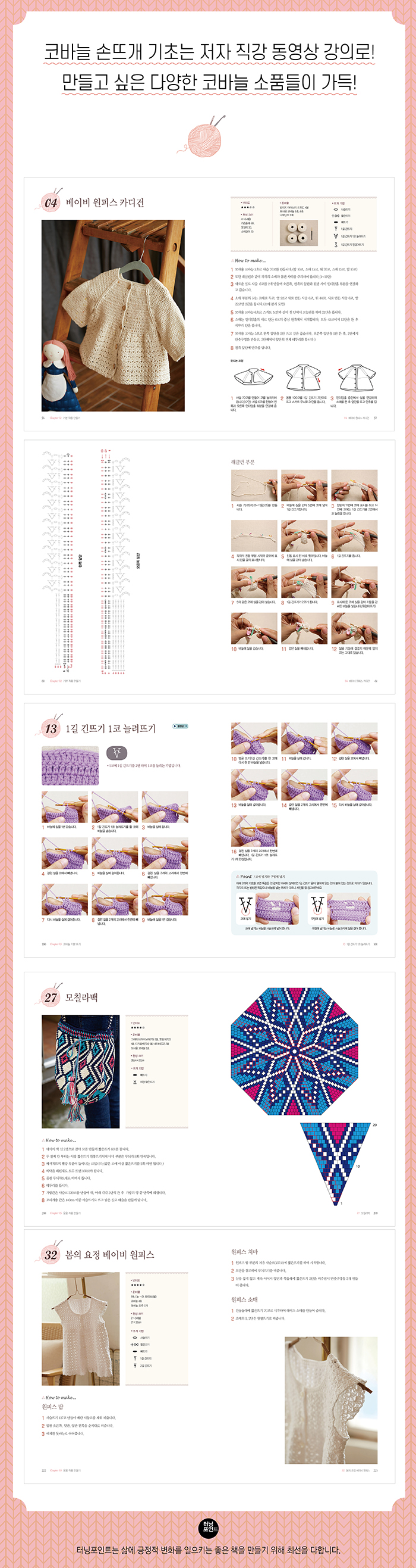 Ãʺ¸ÀÚµµ ½±°Ô ÄÚ¹Ù´Ã ¼Õ¶ß°³¿¡ ÀÔ¹®ÇÒ ¼ö ÀÖ°í, ¹Ù·Î ¹è¿ö ½ÇÀü¿¡ Ȱ¿ëÇÒ ¼ö ÀÖ´Â ÄÚ¹Ù´Ã ¼Õ¶ß°³ ÀÔ¹®°ú Ȱ¿ë, µÎ ¸¶¸®ÀÇ Åä³¢¸¦ ÀâÀ» ¼ö Àִ å. ¼Õ¶ß°³¸¦ óÀ½ ½ÃÀÛÇÏ´Â »ç¶÷ÀÌ¶óµµ ´©±¸³ª ¸ÚÁø ÀÛǰÀ» ¼Õ½±°Ô ¸¸µé ¼ö ÀÖ´Ù. Äڹٴðú ½ÇÀÇ ¼±Åà ¹æ¹ýºÎÅÍ ÄÚ¹Ù´Ã ¼Õ¶ß°³¸¦ ÇÒ ¶§ ²À ¾Ë¾Æ¾ß ÇÒ ±â¹ý 50°¡Áö¸¦ Ä£ÀýÇÑ °úÁ¤ »çÁø°ú ÀúÀÚ Á÷° ÀÎÅÍ³Ý µ¿¿µ»ó °ÀÇ·Î Á¦°øÇÑ´Ù. ¶ß°³ÀÇ Àü °úÁ¤À» »çÁøÀ¸·Î ²Ä²ÄÇÏ°Ô ´ã¾Æ³½ 5°¡Áö ±âº» ÀÛǰ(ü¸®ºí¶ó¼¶ ƼÄÚ½ºÅÍ, ¹öºí¹öºí ³¿ºñ¹Þħ & ¹ß¸ÅÆ®, ¾ö¸¶¶û ¾Æ°¡¶û µ¡½Å, º£À̺ñ ¿øÇǽº °¡µð°Ç, ÄÁƼ´º¾î½º Å×ÀÌºí·¯³Ê)À» Æ÷ÇÔÇÏ¿© 35°¡ÁöÀÇ ½Ç¿ëÀûÀÎ ¼Òǰ°ú ÀÇ·ù µîÀÇ Á¦ÀÛ ¹æ¹ý°ú µµ¾ÈÀ» 1±ÇÀÇ Ã¥¿¡ ´ã¾Ò´Ù. ¼Õ¶ß°³¸¦ ÇÒ ÁÙ ¾Æ´Â µ¶ÀÚ¶ó¸é ÀÀ¿ë ÀÛǰ ¸¸µé±âºÎÅÍ ½ÃÀÛÇØº¸ÀÚ. ÀÌ Ã¥ÀÇ ¾È³»´ë·Î ÄÚ¹Ù´Ã ¼Õ¶ß°³ÀÇ ±âº» ±â¹ý°ú ´Ù¾çÇÑ ½ÇÀü ÀÛǰµéÀ» ¸¸µé´Ùº¸¸é ¾î´À »õ ÄÚ¹Ù´Ã ¸¶´Ï¾Æ°¡ µÈ ÀÚ½ÅÀ» ¸¸³¯ ¼ö ÀÖÀ» °ÍÀÌ´Ù.