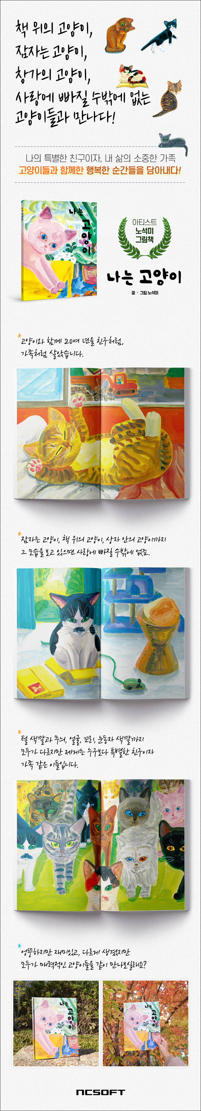 ³ë¼®¹Ì ÀÛ°¡´Â 20¿©³â°£ °í¾çÀ̵鿡 µÑ·¯½Î¿© »ì¾Æ¿Ô´Ù. ¿À·£ ½Ã°£À» ÇÔ²²Çؿ °í¾çÀ̵éÀº ÀÛ°¡ÀÇ Áý¿¡ ÇÔ²² ¸Ó¹«´Â ´Ü¼øÇÑ µ¿¹°ÀÇ Á¸À縦 ¹þ¾î³ª, Ưº°ÇÑ Ä£±¸ÀÌÀÚ »îÀÇ Èñ·Î¾Ö¶ôÀÇ ¼ø°£¿¡ ÇÔ²²ÇØ ¿Â ¼ÒÁßÇÑ Á¸ÀçÀÌ´Ù. °í¾çÀ̵éÀÇ ¸ð½ÀÀ» ±×¸²Ã¥¿¡ ¸¶À½²¯ ´ã¾Æ³Â´Ù. µÚµ¹¾Æº¸´Â °í¾çÀÌ, Ã¥ À§ÀÇ °í¾çÀÌ, ±Ã±ÝÇÑ °í¾çÀÌ, »êÃ¥ÇÏ´Â °í¾çÀÌ, ¸»ÇÏ´Â °í¾çÀÌ µî ´Ù¾çÇÑ °í¾çÀ̵éÀÇ ¸Å·ÂÀûÀÎ ¸ð½ÀÀÌ °¡µæÇÏ´Ù.