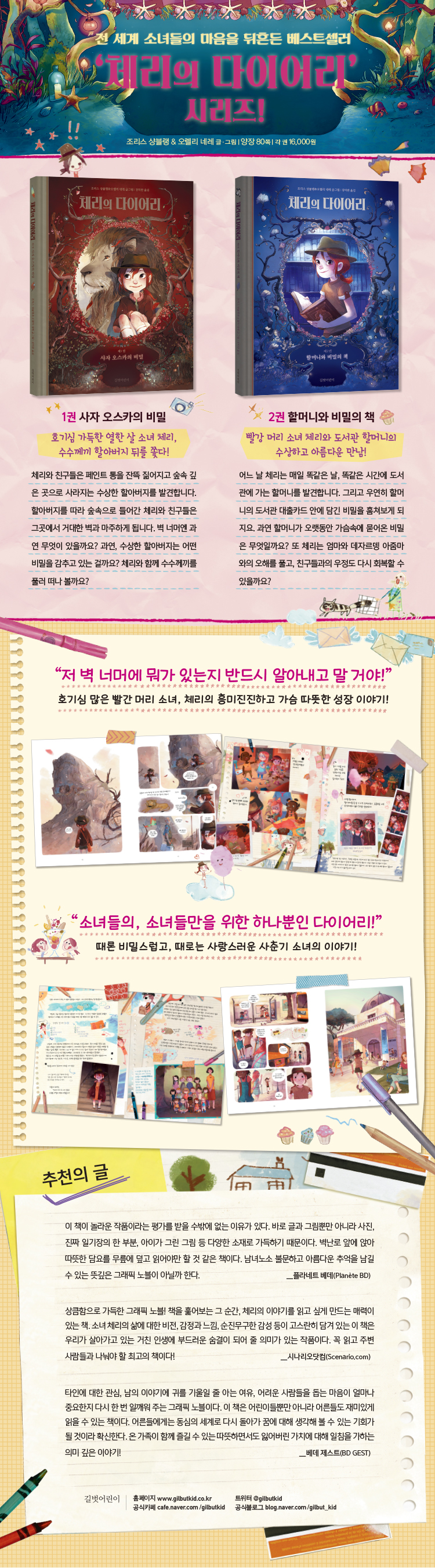 ü¸®´Â ¼Ò¼³°¡¸¦ ²Þ²Ù¸ç ÁÖº¯ »ç¶÷µéÀÇ ¸ð½ÀÀ» È£±â½É °¡µæÇÑ ´«À¸·Î ¹Ù¶óº¸´Â ¼Ò³àÀÔ´Ï´Ù. ¿À´Ãµµ ü¸®´Â »õ·Î¿î ¼ö¼ö²²³¢¸¦ ã¾Æ ¸ðÇèÀ» ½ÃÀÛÇÕ´Ï´Ù. ¾î´À ³¯ ü¸®´Â ¸ÅÀÏ ¶È°°Àº ³¯, ¶È°°Àº ½Ã°£¿¡, ¶È°°Àº ¹°°ÇÀ» µé°í, ¶È°°Àº ¹ö½º¸¦ Ÿ°í ¾îµò°¡·Î ÇâÇÏ´Â ÇҸӴϸ¦ ¹ß°ßÇÕ´Ï´Ù. ±×¸®°í ¿ì¿¬È÷ ÇҸӴϰ¡ ¶³¾î¶ß¸° µµ¼°ü ´ëÃâÄ«µå¸¦ ÁÝ°Ô µË´Ï´Ù. ±× ´ëÃâÄ«µå¿£ ³î¶ø°Ôµµ ¾ÆÁÖ ¿À·¡ÀüºÎÅÍ ´Ü ÇÑ ±ÇÀÇ Ã¥À» ºô¸®°í ÀÖ´Â ÇÒ¸Ó´ÏÀÇ ºñ¹ÐÀÌ ´ã°Ü ÀÖ¾úÁÒ. ü¸®´Â ²öÁú±ä ÃßÀû ³¡¿¡ ºñ¹ÐÀ» ã¾Æ³»°í, ÇҸӴϰ¡ 20³â µ¿¾È ¾ÖŸ°Ô ±â´Ù·Á¿Ô´ø ´õ¾øÀÌ ¼ÒÁßÇÑ ¼±¹°À» ÀüÇØ ÁÝ´Ï´Ù. ÇÏÁö¸¸ »ý°¢Áöµµ ¸øÇß´ø ¹®Á¦°¡ ü¸®¿¡°Ô ¹ú¾îÁý´Ï´Ù. ÇÒ¸Ó´ÏÀÇ ºñ¹ÐÀ» 쫒±â À§ÇØ °ÅÁþ¸»À» ÇÑ °É ¾ö¸¶¿¡°Ô µé۰í, ´Ã µçµçÇÑ Áö¿øÀÚ¿´´ø µ¥ÀÚ¸£µ ¾ÆÁܸ¶¿Íµµ ¸Ö¾îÁö°Ô µË´Ï´Ù. ¹«¾ùº¸´Ùµµ ÀýÄ£ ¸°°ú ¿¡¸®Ä«¿Íµµ Å©°Ô ½Î¿ì°í ¸¿´Ï´Ù. ü¸®´Â ¾û¸ÁÁøÃ¢ÀÌ µÇ¾î¹ö¸° °ü°è¸¦ ÇØ°áÇÏ°í ½ÍÁö¸¸, ¸¶À½Ã³·³ ½±Áö°¡ ¾Ê³×¿ä. °ú¿¬ ÇҸӴϰ¡ ¿À·§µ¿¾È °¡½¿¼Ó¿¡ ¹¯¾î¿Â ºñ¹ÐÀº ¹«¾ùÀϱî¿ä? ü¸®´Â ¾ö¸¶¿Í µ¥ÀÚ¸£µ ¾ÆÁܸ¶¿ÍÀÇ ¿ÀÇØ¸¦ Ç®°í, Ä£±¸µé°úÀÇ ¿ìÁ¤µµ ´Ù½Ã ȸº¹ÇÒ ¼ö ÀÖÀ»±î¿ä?