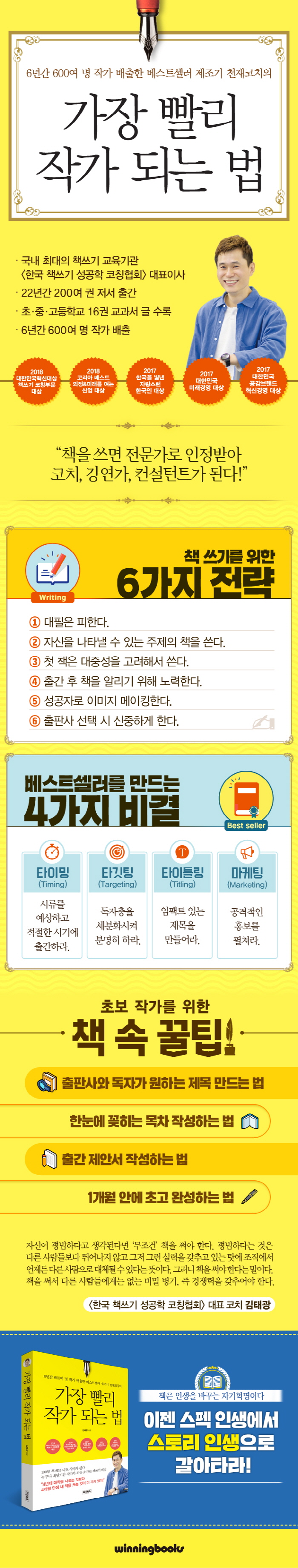 ÀúÀÚ´Â 22³â°£ 200¿© ±ÇÀ» ÁýÇÊÇßÀ¸¸ç 500¿© ¸íÀÇ ¼ö°»ýµéÀÇ Ã¥À» ±âȹÇß´Ù. ȸ¿ø ¼ö 1¸¸ 5õ ¸íÀÎ ±¹³» ÃÖ´ëÀÇ Ã¥¾²±â ±³À°±â°ü <Çѱ¹ Ã¥¾²±â ¼º°øÇÐ ÄÚĪÇùȸ(ÇÑÃ¥Çù)>¸¦ ¿î¿µÇÏ¸é¼ 6³â°£ 600¿© ¸íÀÇ »ç¶÷µéÀ» ÀÛ°¡, °¿¬°¡, ÄÚÄ¡, 1ÀΠâ¾÷°¡·Î ¾ç¼ºÇß´Ù. ±×µé Áß¿¡ ¿ù¼öÀÔ ¼öõ¸¸ ¿ø¿¡¼ ¼ö¾ï ¿øÀ» ¿Ã¸®¸ç °æÁ¦Àû ÀÚÀ¯¸¦ ÀÌ·é À̵鵵 ¸¹´Ù. ÇöÀç ÀúÀÚ¿¡°Ô Ã¥¾²±â ºñ¹ýÀ» ¹è¿î Á¦ÀÚµéÀÌ Ã¥¾²±â ÄÚÄ¡·Î Ȱµ¿Çϰí ÀÖ´Ù. 2012³â °í·Á´ëÇб³ ÇлýµéÀÇ ¸àÅä·Î Ȱµ¿ÇßÀ¸¸ç, 2012³â 8¿ù JTV <ÇູÇ÷¯½º>, 9¿ù KBS <¾ÆÄ§¸¶´ç>¿¡ Ãâ¿¬ÇØ ¡®Ã¥¾²±â ºñ¹ý¡¯¿¡ ´ëÇØ °ø°³ÇÑ ¹Ù ÀÖ´Ù.