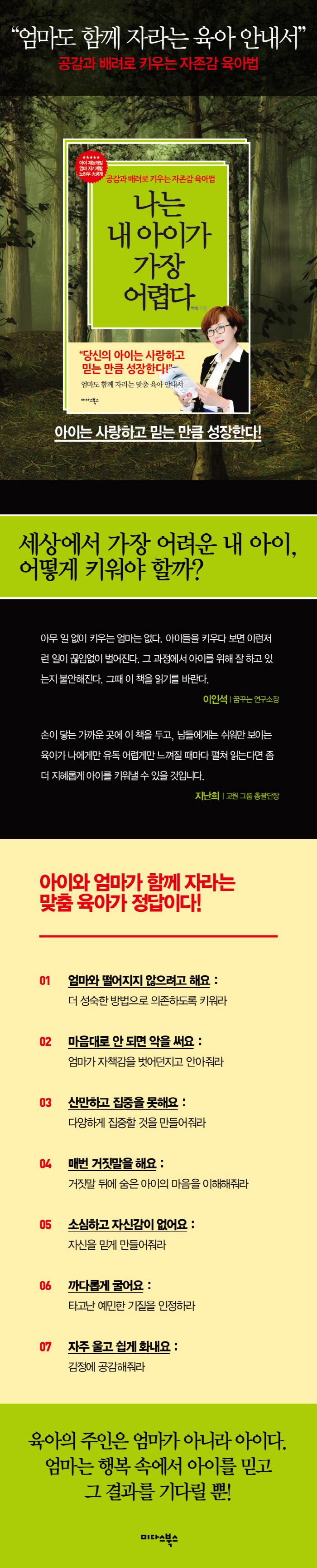 ¾ÆÀ̵éÀ» °¡¸£Ä¡´Â ¼±»ý´Ô ¿ªÇÒ¿¡¼ ÇöÀç´Â ±× ¼±»ý´ÔµéÀÇ ¼ºÀåÀ» µ½´Â ¸Å´ÏÀú ¿ªÇÒÀ» Çϰí ÀÖ´Ù. µÎ ¾ÆÀ̸¦ Ű¿ì°í ÀÖ´Â ¾ö¸¶À̱⵵ ÇÏ´Ù. À°¾ÆÀÇ ±æ¿¡´Â Àý´ëÀûÀÎ ¿øÄ¢µµ, ¸íÄèÇÑ Çö½ÇÀûÀÎ ´äµµ ¾ø´Ù. À°¾Æ´Â °á±¹ ¾ö¸¶ ÀÚ½ÅÀÇ ¼ºÀå°ú ¸Â¹°·Á°£´Ù´Â È®½ÅÀ» °¡Áö°í, ¾ÆÀÌÀÇ ±âÁúÀ» ÆÄ¾ÇÇϰí Àç´ÉÀ» Àϱú¿ì´Â ÀÏ¿¡ ¿Á¤À» ½ñ°í ÀÖ´Ù. 10³â µ¿¾È »ç±³À° ÇöÀå¿¡¼ ¸¸³ ¾ÆÀ̵é°ú ¾ö¸¶µéÀÇ °í¹ÎÀ» ´ãÀº ÀÌ Ã¥Àº, ÃÖ°íÀÇ ¾ö¸¶º¸´Ù ÁÁÀº ¾ö¸¶°¡ µÇ°íÀÚ ÇÏ´Â ´ëÇѹα¹ ¸ðµç ¾ö¸¶µé¿¡°Ô ¾ÆÀ̸¦ Ű¿ì´Â °ÍÀÌ ¾ÆÀ̻Ӹ¸ ¾Æ´Ï¶ó ¾ö¸¶ÀÇ ³»¸éÀ» ¼ºÀå½ÃŰ´Â Áß¿äÇÑ ÀÏÀÓÀ» ¾Ë°Ô ÇÑ´Ù.