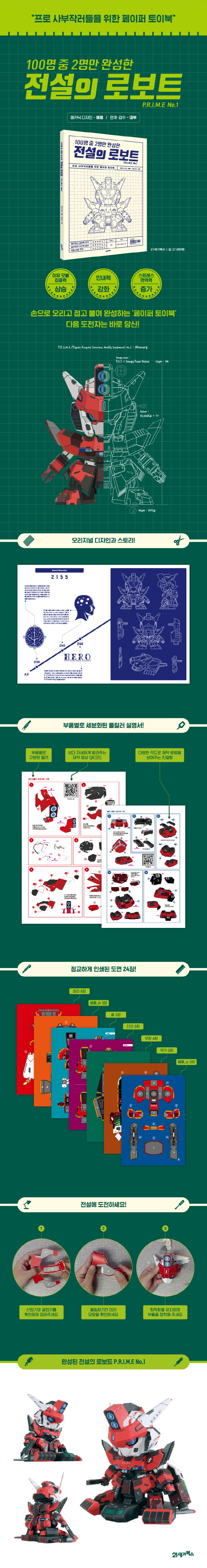 ¡ºÀü¼³ÀÇ ·Îº¸Æ® P.R.I.M.E No.1¡»Àº Á¾ÀÌ µµ¸éÀ» ¿À¸®°í Á¢°í ºÙ¿© ¿Ï¼ºÇÏ´Â ÆäÀÌÆÛ ÅäÀÌºÏ ÀÔ´Ï´Ù. ±×·¯³ª Áö±Ý±îÁö ºÁ¿Ô´ø ÆäÀÌÆÛ ÅäÀ̺ϰú´Â ÀüÇô ´Ù¸¨´Ï´Ù. µµ¸éÀº ¸Ó¸®, »óü, ÆÈ, ´Ù¸®, ¹«±â, ¹«ÀåÀ¸·Î ±¸¼ºµÇ¾î ÀÖÀ¸¸ç, ¸ðµÎ ¿Ï¼ºµÈ ·Îº¸Æ®´Â ¾à 20CmÀÇ Å©±â¸¦ ÀÚ¶ûÇÕ´Ï´Ù. ÀüüÀûÀÎ ¿Ï¼ºµµ¸¦ ³ô¿© ¸¸µå´Â Áñ°Å¿òÀ» ´À³¥ ¼ö ÀÖµµ·Ï ±¸¼ºÇß½À´Ï´Ù. ¶§¹®¿¡ Ű´úÆ®Á·, ÇÁ·Î »çºÎÀÛ·¯µéÀÌ È¥ÀÚ Áñ±â±â¿¡ ºÎÁ·ÇÔÀÌ ¾ø½À´Ï´Ù. ´õºÒ¾î ¾Æºü¿Í ¾ÆÀ̰¡ ÇÔ²² ¸¸µé°Å³ª ¿Â°¡Á·ÀÌ ÇÔ²² ´ÜÇÕÇÏ¸ç ¸¸µé¾î ³ª°¡±â¿¡µµ Á¦°ÝÀÔ´Ï´Ù.