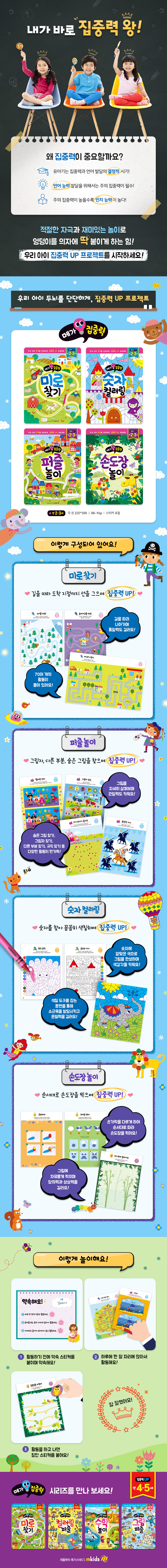 <¸Þ°¡ÁýÁß·Â>Àº ¹Ì·Î ã±â, Ä÷¯¸µ, ÆÛÁñ, ¼ÕµµÀå ³îÀÌ µîÀ¸·Î ±¸¼ºµÇ¾î ¾ÆÀ̵éÀÌ Áñ°Ì°Ô ³îÀÌÇϵí Ȱµ¿ÇÏ¸é¼ ÁýÁß·ÂÀ» ³ôÀÏ ¼ö ÀÖ½À´Ï´Ù. ¶ÇÇÑ, ¿¬ÇÊÀ̳ª »öÄ¥ µµ±¸¸¦ ÀÌ¿ëÇÏ¿© ±×¸²À» ÀÚ¼¼È÷ °üÂûÇÏ°í »öÄ¥ÇÏ¸é¼ ¼Ò±ÙÀ°À» ¹ß´Þ½ÃŰ°í µÎ³ú¸¦ ÀÚ±ØÇÕ´Ï´Ù.