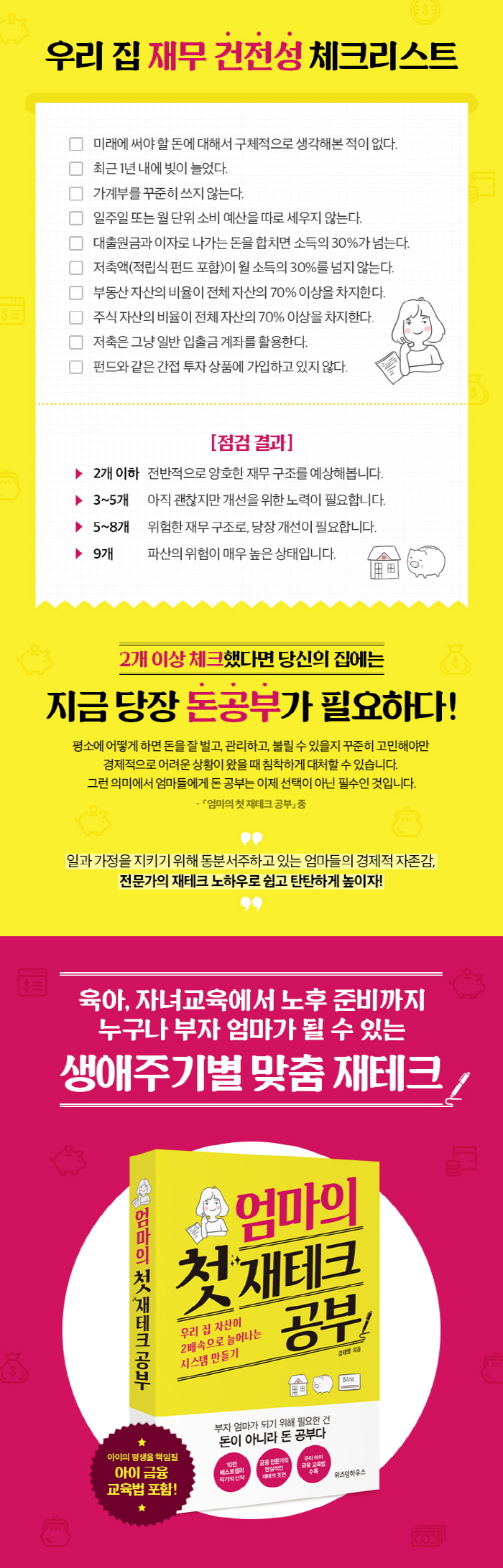 ÀÌ Ã¥Àº ±ÝÀ¶ Àü¹®°¡°¡ ¾´ ÀçÅ×Å© ÀÔ¹®¼·Î, µ·¿¡ ´ëÇØ Àß ¸ô¶ú´ø ¾ö¸¶¶óµµ Àб⸸ ÇÏ¸é ´©±¸³ª µû¶óÇÒ ¼ö ÀÖ´Â ½±°í ±âº»ÀûÀÎ ÀçÅ×Å© ¹æ¹ýÀ» ¼Ò°³ÇÑ´Ù. Çö½ÇÀûÀÌ°í ¾ÈÁ¤ÀûÀÎ ÀçÅ×Å© ¹æ¹ýÀ» ²Ä²ÄÇÏ°í ¼º½ÇÇÏ°Ô µû¶óÇÏ´Ù º¸¸é ¾î´Àµ¡ ÅëÀå¿¡ µ·ÀÌ ½×À̰í, °¡Á·ÀÇ ¹Ì·¡¸¦ °èȹÇÒ ¼ö ÀÖÀ» °ÍÀÌ´Ù. ´õ ³ª¾Æ°¡ ¼º°øÀûÀÎ µ· °ü¸®¸¦ ÅëÇØ ¾ö¸¶µéÀÇ °æÁ¦Àû ÀÚÁ¸°¨±îÁö ³ô¾ÆÁö±â¸¦ ¹Ù¶õ´Ù.