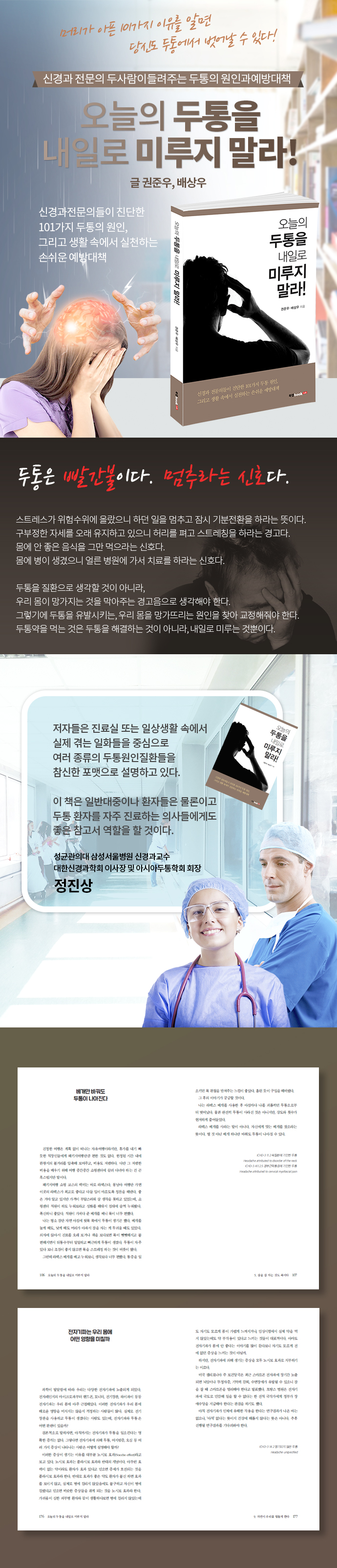 ½Å°æ°ú ÀÇ»ç·Î¼ µÎÅë Áø·á¸¦ ÇÏ´Ùº¸¸é ¾ÈŸ±î¿î ¸¶À½ÀÌ µé ¶§°¡ ¸¹´Ù. ºÐ¸íÈ÷ µÎÅëÀ» ÀÏÀ¸Å°´Â ¿øÀÎÀÌ ÀÖÀ» ÅÙµ¥ ±×°ÍÀ» ã¾Æ³»ÁÖÁö ¸øÇÏ´Â ¹Ì¾ÈÇÔÀÌ´Ù. µÎÅëÀÇ ¿øÀÎÀº »ýȰÆÐÅϰú ±íÀº ¿¬°üÀÌ Àִµ¥, ªÀº Áø·á½Ã°£ µ¿¾È ±× ¿øÀÎÀ» ÀÏÀÏÀÌ È®ÀÎÇÏ´Â °ÍÀº Çö½ÇÀûÀ¸·Î ¾î·Æ´Ù. ¹Ì¾ÈÇÑ ¸¶À½À» ´ú±â À§ÇØ µÎÅëÀÇ ¿¹¹æ¹ýÀ» ã¾Æ ²ôÀûÀÌ´ø ±ÛµéÀÌ ¾î´À»õ Ã¥ ÇÑ ±Ç ºÐ·®ÀÌ µÇ¾î¹ö·È´Ù. ´öºÐ¿¡ µÎÅëȯÀÚ¿¡ ÀÖ¾î °¡Àå ÈçÇÑ, ȤÀº Èï¹Ì·Î¿î 101°¡ÁöÀÇ µÎÅë ¿øÀÎÀ» Ã¥À¸·Î ¿«°Ô µÇ¾ú´Ù.
