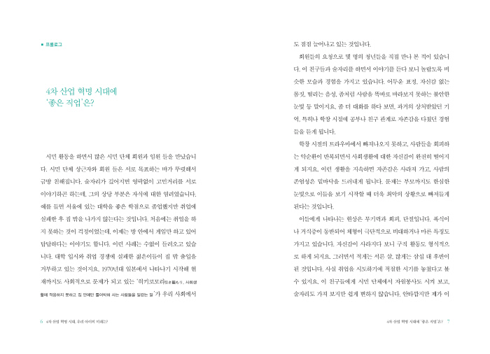 4Â÷ »ê¾÷ Çõ¸í ½Ã´ë°¡ ½ÃÀ۵ǾúÁö¸¸, ¿ì¸®ÀÇ ±³À°Àº ¹Ì·¡¸¦ °í¹ÎÇÏÁö ¾Ê´Â °Í °°½À´Ï´Ù. ¿©ÀüÈ÷ °´°ü½Ä ¹®Á¦¿¡ ±æµé¿©Á® ÀÖ°í, ¹®Á¦¸¦ »¡¸® Ǫ´Â °Í¿¡¸¸ ÁýÁߵǾî ÀÖ½À´Ï´Ù. ÀÌ·¸°Ô ÈÆ·Ã¹Þ¾Æ ÁÁÀº ´ëÇÐÀ» ³ª¿À¸é »õ·Î¿î º¯È¿¡ Àß ÀûÀÀÇÒ ¼ö ÀÖÀ»Áö Àǹ®ÀÔ´Ï´Ù. ¿ì¸® ºÎ¸ðµéÀÌ ÀÚ³àÀÇ ¹Ì·¡¿¡ ´ëÇØ¼ ÁøÁöÇÏ°Ô »ý°¢ÇÒ ¶§°¡ ¿Ô½À´Ï´Ù. Çö ±³À° ü°è»ó °øºÎ¸¦ ÀßÇÏ´Â °ÍÀÌ ¹Ì·¡¸¦ Àß ÁغñÇÏ´Â °ÍÀÎÁö °í¹ÎÇØ ºÁ¾ß ÇÕ´Ï´Ù. ȸ»çµéÀº °í¿ëÀ» ÁÙÀ̰í ÀÖ°í, ¹ß ºü¸£°Ô Àΰø Áö´É µµÀÔÀ» °í¹ÎÇϰí ÀÖ½À´Ï´Ù. »ç¶÷¸¸ÀÌ ÇÒ ¼ö ÀÖ´Â ºÐ¾ß¸¦ ãÁö ¾ÊÀ¸¸é, Á÷¾÷À» À¯ÁöÇϱⰡ ¾î·Æ´Ù´Â Á¡À» À¯³äÇØ¾ß ÇÕ´Ï´Ù. _pp.48~49
