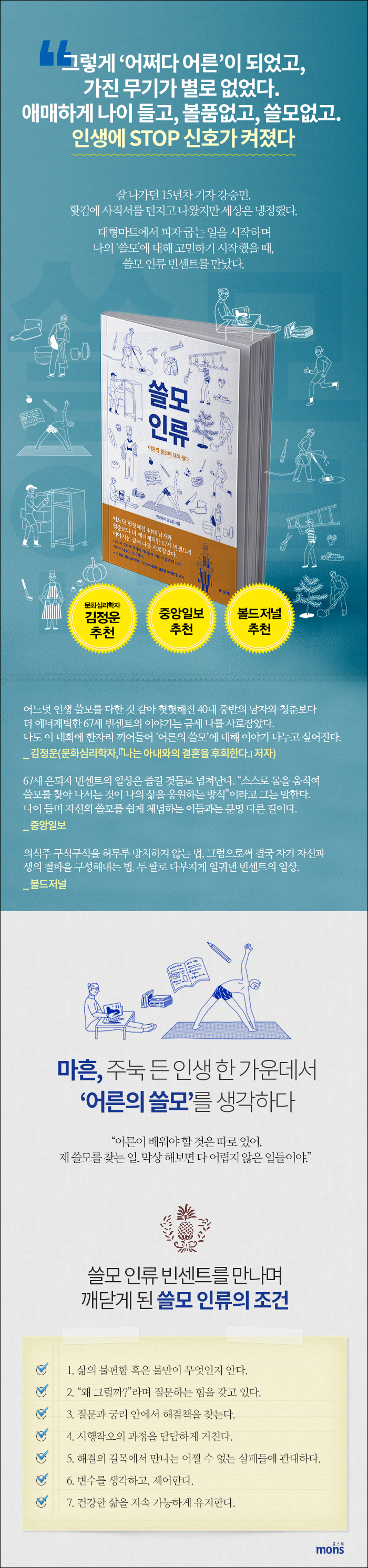 P.42 : "³ ÀÌ Áý¿¡¼ 100³âÀ» »ì °Å¾ß. »ç½Ç ÁýÀ» °íÄ¡´Â ÀÏÀº »õ·Î Áþ´Â °Íº¸´Ù ´õ Èûµç ÀÏÀ̾ß. ¹Ù´ÚºÎÅÍ ¼ö³³°ø°£ Çϳª±îÁö, ¸ðµç °É ½Å°æ ½è¾î. Çϳª¶óµµ ÇãÅõ·ç ÇÒ ¼ö ¾ø¾úÁö. ¾ÕÀ¸·Î 20³â ÀÌ»ó Áý¿¡ ¼Õ ¾È ´ë°í »ì·Á¸é, óÀ½ ÇÒ ¶§ °¡´ÉÇÑ ÇÑ ¿Ïº®ÇÏ°Ô ¼ÕÀ» ºÁ¾ß ÇØ. °á°úÀûÀ¸·Î´Â ºñ¿ë ¸é¿¡¼µµ ±×°Ô ´õ ¾Æ³¢´Â °Å¾ß. ÁÁÀº Á¦Ç°¿¡´Â ´Ù ±×·± °íÁýÀÌ µé¾î ÀÖ¾î. ³ ¹«½¼ ÀÏÀ̵ç Çΰ踦 ´ë°í ½ÍÁö ¾Ê°Åµç. ¹º°¡ À߸øµÇ¸é °á±¹ ÇÏ´Â »ç¶÷ÀÇ Ã¥ÀÓÀÎ °Å¾ß. °Ô´Ù°¡ ÁÖÀÎÀÌ Çΰ踦 ´ë°í ´ëÃæ Çϸé ÀÏÀ» ¸ÃÀº »ç¶÷µéµµ ´ëÃæ ÇÏ°Ô µÅ. ³»°¡ »ì ÁøÂ¥ ÁýÀ» Á¦´ë·Î °íÄ¡·Á¸é, ´ç½Å Àλý Á¦´ë·Î »ì·Á¸é, º¯¸í°ú Çΰ踦 ´ë¼´Â ¾È µÇ´Â °Å¾ß." ´ëÃæ »ìÁö ¾Ê½À´Ï´Ù