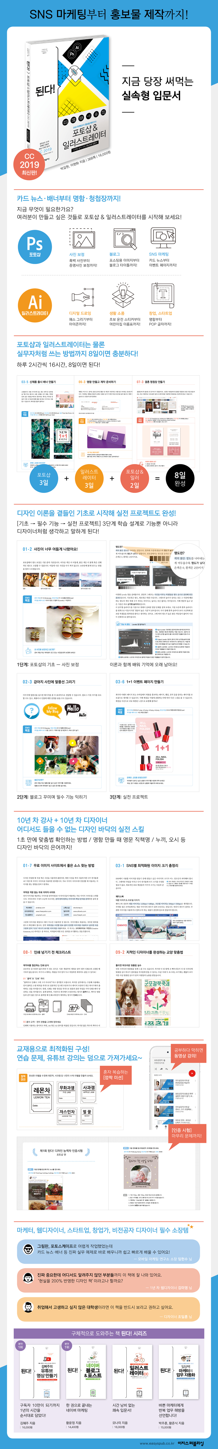 Àϻ󿡼 µðÀÚÀÎÀÌ ÇÊ¿äÇÑ º¸Åë »ç¶÷µéÀ» À§ÇÑ Ã¥. SNS ¸¶ÄÉÆÃ, À¥µðÀÚÀÎ, »çÁø º¸Á¤, ¸íÇÔ, ·Î°í, ¹è³Ê, ûøÀ塤¡¤¡¤ ´çÀå ½á¸ÔÀ» Çö½Ç ¿¹Á¦ 30°³¸¦ °í¸¥ °Ô ³î¶ø´Ù. Æ÷Åä¼¥°ú ÀÏ·¯½ºÆ®·¹ÀÌÅ͸¦ ÇÑ ±ÇÀ¸·Î ¹è¿ì´Â Ã¥. 10³â Â÷ °»ç¿Í µðÀÚÀ̳ʰ¡ ¾ö¼±ÇÑ ¿¹Á¦·Î ¹è¿ì´Ï±î ¿ÕÃʺ¸µµ 8ÀÏ ¸¸¿¡ ½Ç¹« Áغñ¸¦ ³¡³¾ ¼ö ÀÖ´Ù.