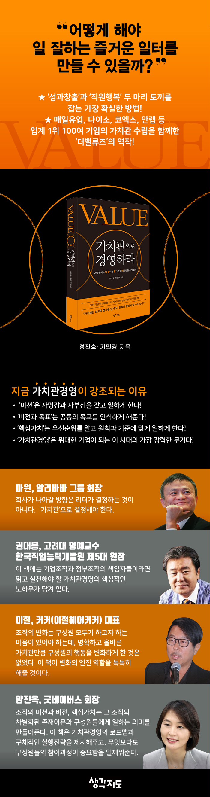 ±â¾÷ °¡Ä¡°üÀÌ ¾øÀ¸¸é ȸ»çÀÇ ¼ö¸¹Àº ³ë·Â¿¡µµ ºÒ±¸ÇÏ°í ¼º°ú·Î À̾îÁö±â Èûµé´Ù. °¡Ä¡°üÀº ÀÖÁö¸¸ Á¶Á÷¹®È¿Í ¿¬°áµÇÁö ¾ÊÀ¸¸é ÀÌ ¶ÇÇÑ ¼º°ú·Î À̾îÁö±â ¾î·Æ´Ù. °¡Ä¡°ü¿¡ ±â¹ÝÀ» µÐ Á¶Á÷¹®È ±¸ÃàÀÌ ¹Ýµå½Ã ÇÊ¿äÇÑ ÀÌÀ¯´Ù. ¸¶Áö¸·À¸·Î Á¦ÇÁ¸® ÆäÆÛJeffrey Pfeffer ±³¼öÀÇ ¸»·Î ±â¾÷ °¡Ä¡°üÀÇ Á߿伺À» ´Ù½Ã ÇÑ ¹ø °Á¶Çغ»´Ù. ¡°±â¾÷ÀÇ ±Ùº»ÀûÀÎ Á¤½Å°ú °¡Ä¡¸¦ Áø½ÉÀ¸·Î ¹Þ¾ÆµéÀÌ°í ½ÇõÇÏ·Á°í ³ë·ÂÇÏÁö ¾ÊÀ¸¸é °áÄÚ ¼º°øÀ» ¸ð¹æÇÒ ¼ö ¾ø´Ù.¡±