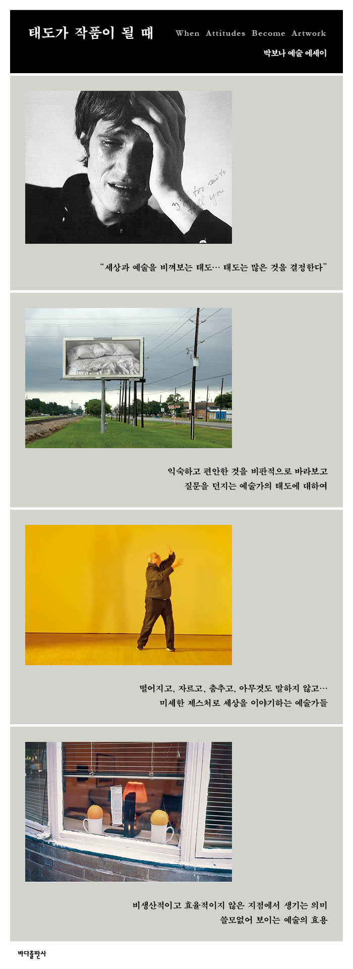 ¡´ºÀÁö ¼Ó »óÀÚ¡µ´Â Àü½Ã¸¦ ¿©´Â µ¥ ±â¿©ÇÑ ¹Ì¼úÀÛ°¡¿Í Å¥·¹ÀÌÅÍ ±×¸®°í Àü½ÃÀå ½ºÅÂÇÁµé¿¡°Ô Àü½Ã ¿ÀÇÁ´× Àü¿¡ Àú³á ½Ä»ç ½À°ü°ú ÃëÇâ µîÀ» ¹°¾îº» ÈÄ ÀåÀ» º¸°Ô Çϰí, Àü½Ã ¿ÀÇÁ´× ³»³» ±× ºÀÁö¸¦ µé°í ´Ù´Ï¸ç ¼·Î ´ëȸ¦ ³ª´« µÚ ÁýÀ¸·Î °¡Á®°¡ Àú³áÀ» ÇØ¸ÔÀ» ¼ö ÀÖ°Ô ÇÑ ÀÛǰÀÌ´Ù. ¡´´ç½ÅÀÌ ¹Ï°í ÀÖ´Â °ÍÀ» ¸»Çص帳´Ï´Ù 1¡µÀº Àü½ÃÀå¿¡¼ °ü°´À» ¾È³»Çϰí ÀÛǰÀ» ÁöŰ´Â °¶·¯¸® µµ¿ì¹Ìµé¿¡°Ô °ÉÀ» ¶§¸¶´Ù ¼Ò¸®°¡ ³ª´Â ÅÇ´í½º ½´Á ½Å°Ô ÇÏ¿© Á¡Àݰí Á¤ÀûÀÎ Àü½Ã °ø°£ÀÇ ¸®µëÀ» ±ú°í ºÐÀ§±â¸¦ ȯ±â½Ã۰íÀÚ Çß´ø ÀÛǰÀÌ´Ù.