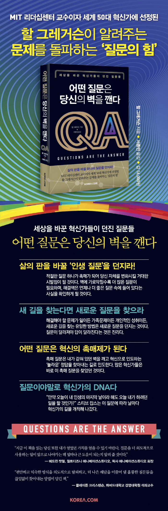 ¡¶¾î¶² Áú¹®Àº ´ç½ÅÀÇ º®À» ±ü´Ù¡·´Â ¼¼°èÀûÀÎ Çõ½Å ±â¾÷ ¸®´õµé°úÀÇ ÀÎÅͺ並 Åä´ë·Î »ý°¢ÀÇ À籸¼º°ú Áú¹®ÀÇ ±â¼ú¿¡ ´ëÇØ ¼Ò°³Çϸç, µ¹ÆÄ±¸¸¦ ã´Â ÀÏÀº ¾î¶² Áú¹®À» ÇÏ´À³Ä¿¡ ´Þ·ÈÀ½À» ¼³ÆÄÇÑ´Ù.