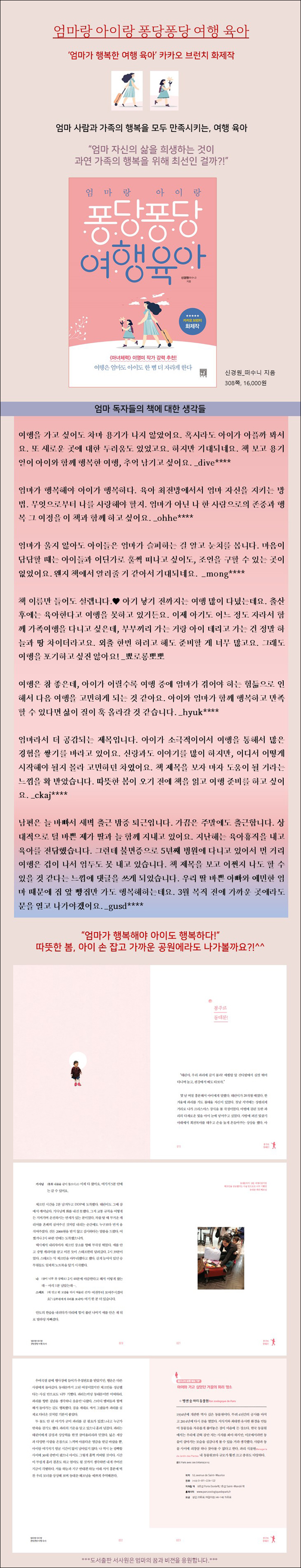 ¾ö¸¶°¡ µÇ¾î¼µµ ¸ÅÀÏ ²ÞÀ» ²Ù¸ç »ç´Â 30´ë ÈÄ¹Ý ¼Ò³à´Ù. ¾ö¸¶ »ç¶÷À¸·Î »ì¸é¼ ¡®³ª¡¯¸¦ Àұ⠽Ⱦú´Ù. ºüµíÇÑ »ì¸²»ìÀÌ¿Í µ¶¹ÚÀ°¾Æ¿¡ ÁöÄ¥ ¶§¸¶´Ù ±×Åä·Ï ÁÁ¾ÆÇÏ´Â ¿©ÇàÀ» Á¶ ±Ý¾¿ ¿å½É ºÎ¸®¸ç »ì¾Ò´Ù. ¾î¸° ¾ÆÀ̿͵µ ¼Ò¼ÒÇÑ ¶§·Î´Â °£ Å« ¿©ÇàÀ» ÇÒ ¶§¸¶´Ù ¸ö ¾ÈÀÇ ¼¼Æ÷°¡ µÇ»ì¾Æ³ª´Â ´À³¦ÀÌ µé¾ú´Ù. ³î¶ø°Ôµµ À°¾Æ°¡ ¹ö°Å¿ö¼ ¹«ÀÛÁ¤ ÁýÀ» ¶°³ ¿©Çà ´öºÐ¿¡, ¾ÆÀ̵éÀ» ´õ ¸¹ÀÌ »ç¶ûÇÒ ¼ö ÀÖ¾ú´Ù. ¿©Çà¿¡ ´«ÀÌ ¸Õ À̱âÀûÀÎ ¾ö¸¶Áö¸¸, °í¸¿°Ôµµ ¾ÆÀ̵éÀº Àڱ⸸ÀÇ ¼Óµµ·Î ¼¼»óÀ» Áñ±â°í ÀÖ¾ú´Ù. ÅÂÅ ³²¸Å¿Í ¹è³¶À» ¸Þ°í ¼¼°è °¢Áö¸¦ µ¹¾Æ´Ù´Ò ³¯À» ²Þ²Û´Ù. ºÎµð »ç¶ûÀÌ °¡µæ Âù ¾ÆÀ̵é·Î, ¼¼»ó¿¡ º¸ÅÆÀÌ µÉ ¾ÆÀ̵é·Î ¼ºÀåÇÏ±æ ±âµµÇÑ´Ù.