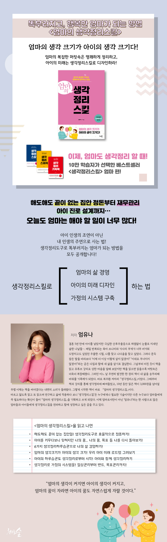 ¡º¾ö¸¶ÀÇ »ý°¢Á¤¸®½ºÅ³¡»¿¡¼´Â ¾ö¸¶ÀÇ ÀλýÀ» Á¤¸®ÇÏ´Â °Í°ú ´õºÒ¾î ¾ö¸¶ ÀÚ½ÅÀÇ ²Þ°ú ¹Ì·¡¸¦ ¼³°èÇÏ´Â °Í¿¡ ÁßÁ¡À» µÎ¾î Àϱ⾲±â(°¨»çÇϱâ), Àλý±×·¡ÇÁ, ¸¸´Ù¶óÆ®¿Í ¸¶Àεå¸ÊÀ¸·Î ±×¸®´Â ²ÞÁöµµ¸¦ ¾ö¸¶ÀÇ ÀλýÁ¤¸®½ºÅ³ 3Á¾ ¼¼Æ®·Î Á¤Çß´Ù. --- p.101