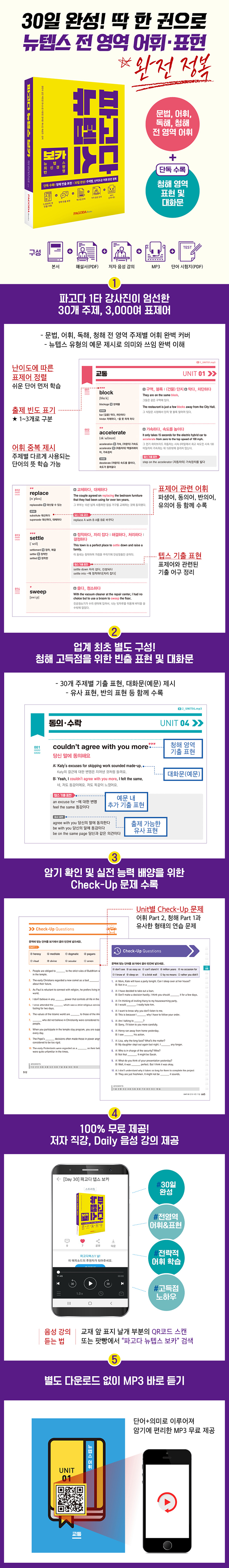 ´ºÅܽº ½ÃÇè¿¡ ÃâÁ¦µÇ´Â ¸ðµç ¿µ¿ª ¾îÈÖ¸¦ 30ÀÏ ¿Ï¼ºÀ¸·Î ¸¶½ºÅÍÇÒ ¼ö ÀÖ´Â º¸Ä« ±³ÀçÀÌ´Ù. ÆÄ°í´Ù 1Ÿ °»çÁøÀÌ ´ºÅܽº ±âÃâ ¾îÈÖ¸¦ ºÐ¼®ÇØ ¾ö¼±ÇÑ ÁÖÁ¦º° ¾îÈÖ ¹× Ç¥ÇöÀ» ÃÑ 60Unit(¾îÈÖ 30Unit+Ã»ÇØ Ç¥Çö 30Unit)À¸·Î Á¦½ÃÇÑ´Ù.