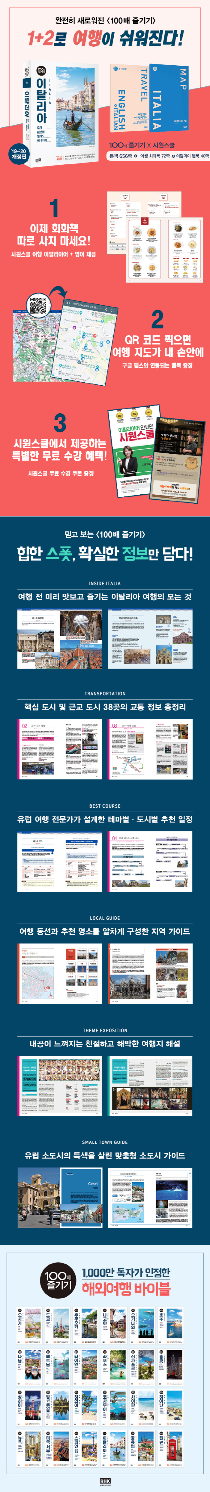 ¿©ÇàÀ» ÁÁ¾ÆÇÑ´Ù¸é ´©±¸³ª ¸¶À½ÀÌ µÎ±Ù°Å¸®´Â °èÀý, ¿©¸§À» ¸Â¾Æ¡¶ÀÌÅ»¸®¾Æ 100¹è Áñ±â±â¡· °³Á¤ 2ÆÇÀÌ Ãâ°£µÆ´Ù. À̹ø¿¡µµ ¿ª½Ã ¡®À¯·´ ¿©Çà Àü¹®°¡¡¯¶ó´Â ŸÀÌÆ²ÀÌ Á¶±Ýµµ ¾Æ±õÁö ¾ÊÀº º£Å×¶û, È«¼ö¿¬ ¿©ÇàÀÛ°¡°¡ ÆÈÀ» °È¾îºÙÀÌ°í ³ª¼¹´Ù. ½Ê¼ö ³â µ¿¾È À¯·´À» ¼öÂ÷·Ê ¹æ¹®ÇÑ ¿©ÇàÀÛ°¡·Î¼ ÇöÀå ÃëÀ縦 ÅëÇØ ²Ä²ÄÇÏ°Ô ³»¿ëÀ» ±¸¼ºÇß´Ù. ¿À·¡µÈ ½ºÆýÀ» »©°í, ½Å¼±ÇÏ°í ¡®ÇÖÇÑ¡¯ ½ºÆýÀ¸·Î ±³Ã¼ÇÏ´Â ÀÛ¾÷¿¡ ¸ÅÁøÇß´Ù. ³»¿ëÀ» Ãæ½ÇÈ÷ ´ÙÁø º»Ã¥¿¡ ´õÇØ ±¹³» 1À§ ¾îÇÐ ºê·£µå ½Ã¿ø½ºÄðÀÌ °¨¼öÇÑ ¿©Çà ȸȺÏ, ±×¸®°í ±¸±Û ¸Ê½º·Î À̵¿ÇÒ ¼ö ÀÖ´Â QR Äڵ带 ¼ö·ÏÇÑ ¸ÊºÏÀ» ÇÔ²² ¿«¾î ¿Ï¼ºµµ¸¦ ²ø¾î¿Ã·È´Ù. ÀÌó·³ ´õ¿í ÅºÅºÇØÁø ¡¶ÀÌÅ»¸®¾Æ 100¹è Áñ±â±â¡· Ãֽа³Á¤ÆÇÀº À¯·´ ¿©ÇàÀÇ ¹é¹Ì, ÀÌÅ»¸®¾Æ¸¦ È®½ÇÇÏ°Ô °¡À̵åÇØ³¾ Áغñ¸¦ ¸¶ÃÆ´Ù.