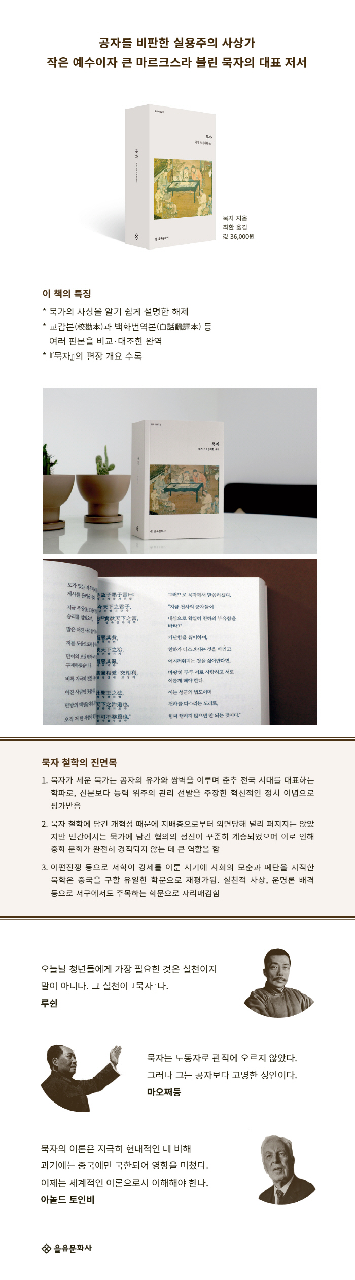 ÇѶ§ °øÀÚ°¡ ¼¼¿î À¯°¡¿Í ½Öº®À» ÀÌ·ê ¸¸Å ÃáÃß Àü±¹ ½Ã´ë¸¦ ´ëÇ¥ÇÏ´Â ÇÐÆÄ °¡¿îµ¥ Çϳª¿´´ø ¹¬°¡ÀÇ »ç»óÀÌ ´ã±ä ¡º¹¬ÀÚ(Ùøí)¡» ¿Ï¿ªº»ÀÌ À»À¯¹®È»ç¿¡¼ Ãâ°£µÇ¾ú´Ù. ÀÌ Ã¥Àº ±³°¨º»(ÎèÊëÜâ)°ú ¹éȹø¿ªº»(ÛÜü¥Ûèæ»Üâ) µî ¿©·¯ ÆÇº»À» ºñ±³¡¤´ëÁ¶ÇÏ¿© ¿øÀüÀÇ ¶æÀ» ÃÖ´ëÇÑ º¹¿øÇßÀ¸¸ç µ¶ÀÚ°¡ ¹¬°¡ÀÇ »ç»óÀ» Á» ´õ Àß ÀÌÇØÇÒ ¼ö ÀÖµµ·Ï Ä£ÀýÇÑ ÇØÁ¦¿Í °¢ ÀåÀÇ ÆíÀå °³¿ä¸¦ ½Ç¾ú´Ù. ´ç½Ã Çõ½ÅÀûÀÎ »ç»óÀ» ÁÖÀåÇÑ ¹¬°¡´Â °á±¹ Áö¹èÃþÀÇ ¿Ü¸éÀ» ¹Þ°í À¯°¡°¡ ÅëÄ¡ À̳äÀ¸·Î µî±ØÇÏ°Ô µÇ¸é¼ ³Î¸® ¾Ë·ÁÁöÁö ¾Ê¾ÒÁö¸¸ ¿À´Ã³¯¿¡µµ ¿©ÀüÈ÷ ½ÇõÀû »ç»óÀ¸·Î¼ À§Ä¡¸¦ °ø°íÈ÷ Çϰí ÀÖ´Ù.