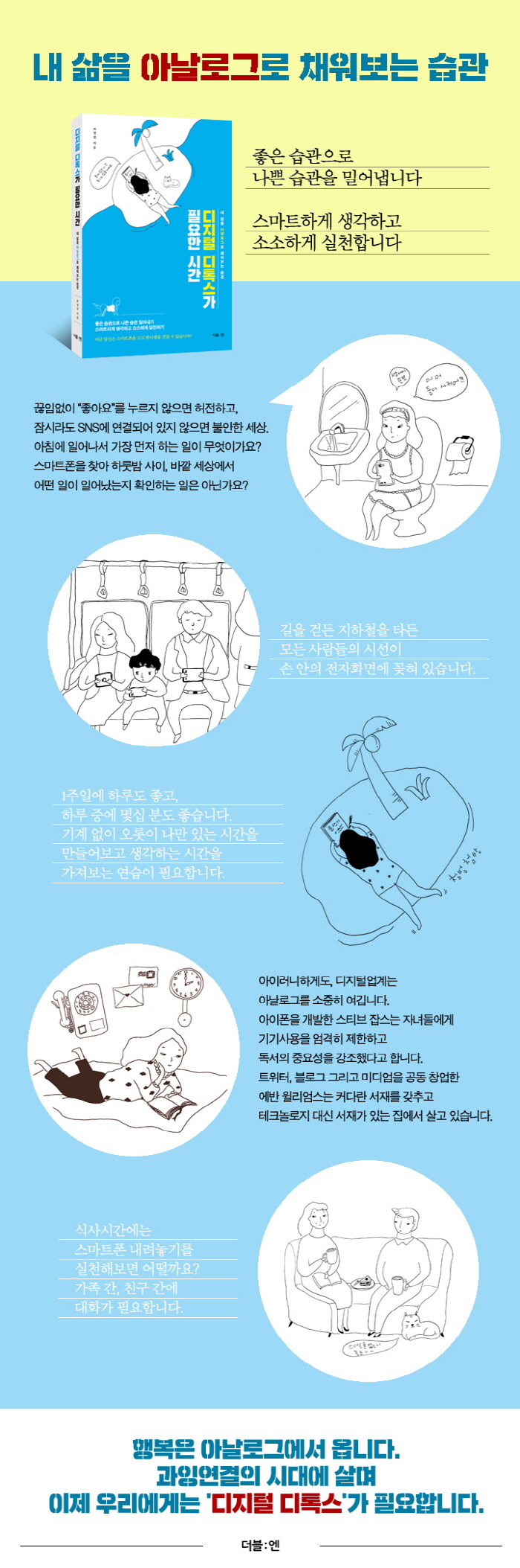 ½º¸¶Æ®ÆùÀÇ µîÀå ÀÌÈÄ, ¼¼»óÀÌ ³Ê¹« ±â±â Áß½ÉÀ¸·Î µ¹¾Æ°¡°í ÀÖ°í, ±×°ÍÀÌ µðÁöÅÐ Áßµ¶À̶ó´Â ½É°¢ÇÑ °á°ú¸¦ ÃÊ·¡ÇßÀ» »Ó¸¸ ¾Æ´Ï¶ó Áö±Ý Çö´ëÀÎÀÇ ½ÅüÀû, Á¤½ÅÀû °Ç°À» °¡Àå À§ÇùÇÏ´Â ¿ä¼Ò¶ó´Â »ç½Ç¿¡ ÃÊÁ¡À» ¸ÂÃç ÀÌ Ã¥À» ½è´Ù. ÇູÀº ´ÙºÐÈ÷ ¾Æ³¯·Î±×ÀûÀÌ¸ç ¾Æ³¯·Î±×ÀÇ ÃÖÁ߽ɿ¡ ÀÖ´Â ÀÚ¿¬°ú Ç×»ó °¡±õ°Ô Áö³»¸é¼ ½º½º·ÎÀÇ ÇູÀ» ±× ¼Ó¿¡¼ ÇѲ¯ ã°í ´©·Á¾ß¸¸ ÇÑ´Ù°í »ý°¢ÇÑ´Ù.
