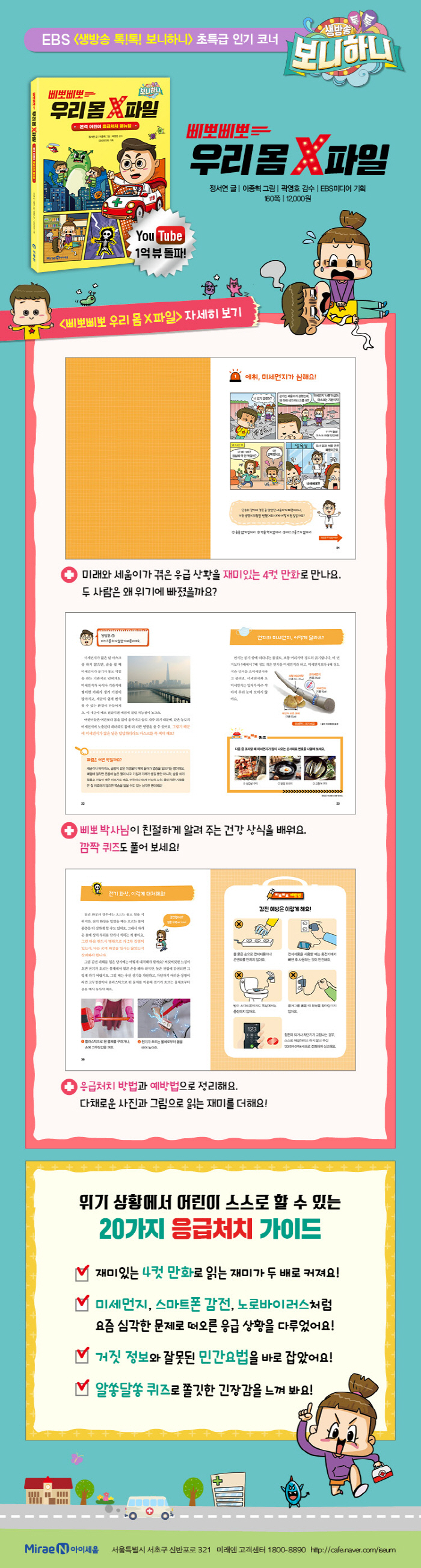 16³â° Àα⸮¿¡ ¹æ¿µ ÁßÀÎ Àå¼ö ¾î¸°ÀÌ ÇÁ·Î±×·¥, EBS ¡´»ý¹æ¼Û Åå!Åå! º¸´ÏÇÏ´Ï¡µÀÇ Àαâ ÄÚ³Ê ¡´»ß»Ç»ß»Ç! ¿ì¸® ¸ö XÆÄÀÏ¡µÀÌ Ã¥À¸·Î ³ª¿Ô¾î¿ä. ÇÑâ ¶Ù¾î³î ³ªÀÌÀÎ ¾î¸°ÀÌ´Â Á¶±Ý¸¸ ¹æ½ÉÇØµµ ´« ±ô¦ÇÒ »çÀÌ¿¡ Çǰ¡ ³ª°í, ÆÈÀÌ ºÎ·¯Áö°í, ¼ÕÅéÀÌ ºüÁö±âµµ ÇÕ´Ï´Ù. ±×¶§ ÁÖº¯¿¡ ºÎ¸ð´ÔÀ̳ª ¼±»ý´ÔÀÌ ¾È °è½Ã¸é ´õ¿í ³î¶ó°í ¹«¼·°ÚÁÒ? Àç¹ÌÀÖ´Â 4ÄÆ ¸¸È¿Í ¿ì¸® ¸öÀ» ÁöŰ´Â ¾ËÂù Á¤º¸°¡ ´ã±ä ¡¶»ß»Ç»ß»Ç ¿ì¸® ¸ö XÆÄÀÏ¡·Àº Àϻ󿡼 ¹ß»ýÇÏ´Â Å©°í ÀÛÀº »ç°í¿¡ ¾î¸°ÀÌ È¥ÀÚ¼µµ ´ëóÇÒ ¼ö ÀÖ´Â 20°¡Áö ÀÀ±Þóġ ¹æ¹ýÀ» ¾Ë·Á ÁÖ´Â ¡®¾ÈÀü ±³°ú¼¡¯ÀÔ´Ï´Ù.