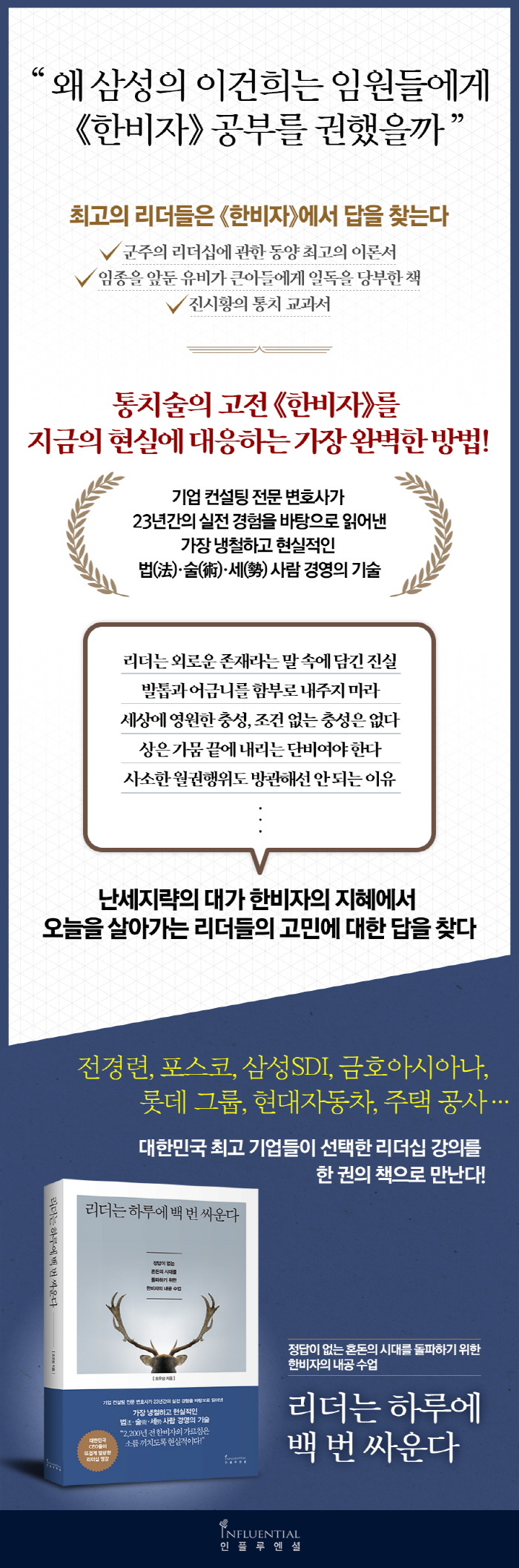 ¡¶ÇѺñÀÚ¡·´Â ¸ð·«°ú ±Ç¸ð¼ú¼ö¿¡ °üÇÑ ºñ¹ýÀ» ´ãÀº Ã¥ÀÌ ¾Æ´Ï¶ó ¸Å¿ì Çö½ÇÀûÀÌ°í ½Ç¿ëÀûÀÎ ¸®´õ½Ê¿¡ °üÇÑ Ã¥ÀÌ´Ù. ÀÌ·¯ÇÑ °üÁ¡¿¡¼ ÇѺñÀÚÀÇ °¡¸£Ä§À» µÇ¤¾îº»´Ù¸é ¸®´õ´Â ÀÌÀÍ¿¡ µû¶ó ¿òÁ÷ÀÌ´Â °ÍÀÌ Àΰ£ÀÇ ¾îÂîÇÒ ¼ö ¾ø´Â º»¼ºÀ̶ó´Â Á¡À» ¾Ë°í ÀÖ¾î¾ß Çϰí, µû¶ó¼ ÀÌÀÍ¿¡ µû¶ó ¿òÁ÷ÀÌ´Â Á÷¿øµé¿¡ ´ëÇØ ºÐ³ëÇϰųª ÁÂÀýÇÏ´Â ´ë½Å °ú¿¬ ¾î¶»°Ô ÇØ¾ß ¼·ÎÀÇ ÀÌÇØ°ü°è¸¦ ¿ø¸¸ÇÏ°Ô ÃæÁ·½Ãų ¼ö ÀÖÀ» °ÍÀΰ¡ ÇÏ´Â ¹æ¹ý·Ð¿¡ ÁýÁßÇØ¾ß ÇÑ´Ù. _p.22 <Á¦1°: ¸®´õ´Â ¿Ü·Î¿î Á¸Àç¶ó´Â ¸» ¼Ó¿¡ ´ã±ä Áø½Ç>