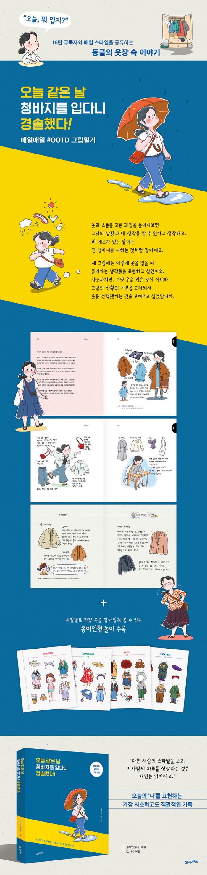 ÀúÀÚ´Â ¿ÊÀ» ÀÔ¾úÀ» ¶§ ÆíÇÏ°Ô ÇϷ縦 º¸³¾ ¼ö ÀÖ´Â °Íµµ ¿ÊÀ» ¡®Àß¡¯ ÀÔ´Â °ÍÀ̶ó°í ¸»ÇÑ´Ù. ÀÌ Ã¥¿¡¼´Â ¾Æ¹« ÀÏÀÌ ¾øÀ» ¶§, Ä£±¸¸¦ ¸¸³¯ ¶§, Ưº°ÇÑ ³¯ µî ¸ÅÀϸÅÀÏ ÀÚ½ÅÀÌ ÁÁ¾ÆÇÏ´Â ¹æ½Ä´ë·Î ¿ÊÀ» ÀԾ¸é¼ ¡®³ª´Ù¿î¡¯ ½ºÅ¸ÀÏÀ» ã¾Æ°¡´Â À̾߱⸦ ÇÑ Àå, ÇÑ ÀåÀÇ ±×¸²¿¡ ´ã¾Ò´Ù.