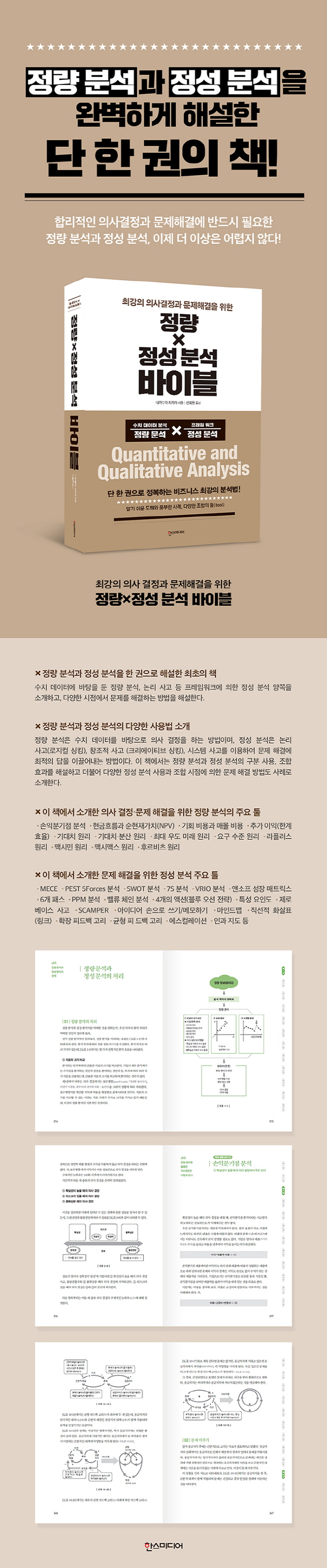 ¿ì¸®°¡ Á¢ÇÏ´Â ºñÁî´Ï½º ÇöÀå¿¡¼´Â ¸Å¼ø°£ ºÎµúÈ÷´Â ¹®Á¦ÇذáÀÇ ¼ø°£¿¡ °íµµÀÇ ÀÇ»ç°áÁ¤À» ¿ä±¸ÇÑ´Ù. Å©°í ÀÛÀº ÀÇ»ç°áÁ¤ÀÌ ¸ðÀÌ°í ¸ð¿© ¼º°ú·Î ½×À̰í, °á±¹ À̰ÍÀÌ ÃàÀûµÇ¾î ±â¾÷ÀÇ ¿î¸íÀ» Á¿ìÇÏ´Â °ÍÀÌ´Ù. ÀÌ Ã¥Àº ÇÕ¸®ÀûÀÎ ÀÇ»ç°áÁ¤°ú ¹®Á¦Çذῡ ¹Ýµå½Ã ÇÊ¿äÇÑ Á¤·® ºÐ¼®°ú Á¤¼º ºÐ¼®ÀÇ ¸ðµç °ÍÀ» Áý´ë¼ºÇÑ Ã¥ÀÌ´Ù. Á¤·® ºÐ¼®°ú Á¤¼º ºÐ¼®À̶õ ¹«¾ùÀÎÁö, ¾î¶² Åø(tool)À» ¾î¶² »óȲ¿¡¼ ¾î¶»°Ô ÀÌ¿ëÇÏ´ÂÁö dzºÎÇÏ°í ´Ù¾çÇÑ ½ÇÁ¦ »ç·Ê¸¦ µé¾î ¾Ë±â ½±°Ô ¼Ò°³Çϰí ÀÖ´Ù.