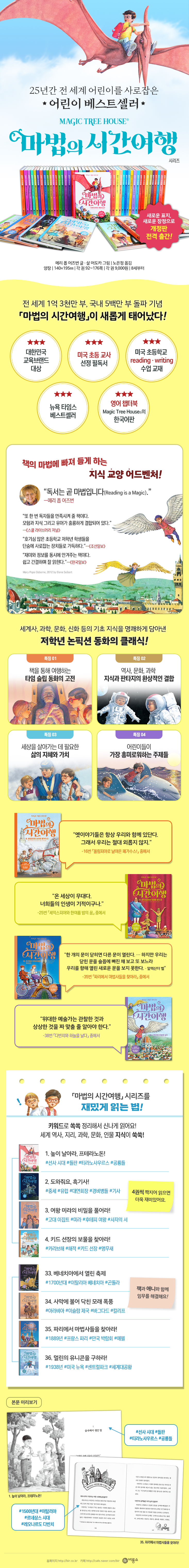 Àü ¼¼°è ¾î¸°À̵é°ú ºÎ¸ðµéÀÇ »ç¶ûÀ» ¹Þ¾Æ ¿Â <¸¶¹ýÀÇ ½Ã°£¿©Çà Magic Tree House> ½Ã¸®Áî °³Á¤ÆÇÀÌ ±¹³» ÆÇ¸Å 500¸¸ ºÎ µ¹ÆÄ¸¦ ±â³äÇÏ¿© Ãâ°£µÇ¾ú´Ù. <¸¶¹ýÀÇ ½Ã°£¿©Çà> ½Ã¸®Áî´Â ÁÖÀΰø Àè°ú ¾Ö´Ï ³²¸Å°¡ ¸¶¹ýÀÇ ¿ÀµÎ¸·ÁýÀ̶ó´Â ½ÅºñÇÑ °ø°£À» ÅëÇØ Ã¥ ¼Ó ¼¼°è·Î ¿Å°Ü °¡¸ç ½Å³ª´Â ¸ðÇèÀ» ÆîÄ¡´Â ÆÇŸÁö µ¿È´Ù.