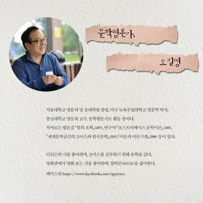 ¼¿ï´ëÇб³ Àι®´ëÇÐ ¿µ¾î¿µ¹®Çаú ¹× µ¿´ëÇпøÀ» Á¹¾÷ÇÏ°í ´º¿åÁÖ¸³´ëÇб³¿¡¼ ¿µ¹®ÇÐ ¹Ú»ç ÇÐÀ§¸¦ ÃëµæÇß´Ù. ÇöÀç Ãæ³²´ëÇб³ ¿µ¾î¿µ¹®Çаú ±³¼öÀÌ¸ç ºñÆò°øµ¿Ã¼ Å©¸®Æ¼Ä«ÀÇ µ¿ÀÎÀ¸·Î Ȱµ¿ ÁßÀÌ´Ù. Á¦ÀÓ½º Á¶À̽º¸¦ ºñ·ÔÇÑ ¿µ¹Ì¼Ò¼³, ºñÆò ¹× ¹®ÈÀÌ·Ð, ºñ±³¹®ÇÐ µî¿¡ °ü½ÉÀ» µÎ¸é¼ °¡¸£Ä¡°í ¿¬±¸ ÁßÀÌ´Ù. ÁÖ¿äÀú¼·Î À̷аú À̷бâ°è(2008), ¿¡µå¿öµå »çÀÌµå ´Ù½Ã Àбâ(2006, °øÀú) µîÀÌ ÀÖ´Ù.