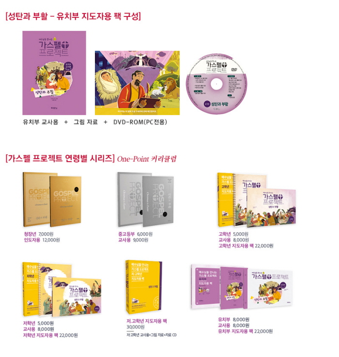 ¡¶°¡½ºÆç ÇÁ·ÎÁ§Æ®¡· À¯Ä¡ºÎ ±³Àç´Â À¯¾Æ¿¡°Ô ¼º°æÀ» Á» ´õ È¿°úÀûÀ¸·Î °¡¸£Ä¥ ¼ö ÀÖµµ·Ï µ½´Â ±³ÀçÀÔ´Ï´Ù. ¼º°æ Àüü¿¡¼ ²÷ÀÓ¾øÀÌ ¸»Çϰí ÀÖ´Â ¡®¿¹¼ö ±×¸®½ºµµ¡¯¸¦ À¯¾Æ±â¿¡ ²À ¸Â´Â ±³¼ö ¹æ¹ýÀ¸·Î ¼Ò°³ÇØ À¯¾Æ¿¡°Ô ¿¹¼ö´Ô°úÀÇ ÇູÇÑ ¸¸³²À» ¼±¹°ÇÒ °ÍÀÔ´Ï´Ù. ¶ÇÇÑ ¡¶°¡½ºÆç ÇÁ·ÎÁ§Æ®¡·´Â °¡Á¤°úÀÇ ¿¬°è ±³À°ÀÌ ¸Å¿ì Áß¿äÇÑ À¯¾Æ±â¿¡ ºÎ¸ð¿Í ±ä¹ÐÇÏ°Ô »óÈ£ ÀÛ¿ëÇÒ ¼ö ÀÖµµ·Ï ±¸¼ºµÇ¾î ÀÖ½À´Ï´Ù. Àü ¿¬·É¿¡ ¸Â´Â ±³Àç°¡ ±¸ºñµÇ¾î Àֱ⠶§¹®¿¡ ¸ðµç °¡Á·, ´õ ³ª¾Æ°¡ ¸ðµç ±³È¸ÀÇ ±¸¼º¿øÀÌ °°Àº ¸»¾¸À¸·Î ´ëȸ¦ ³ª´ ¼ö ÀÖ½À´Ï´Ù. ÀÌ ±³À縦 ÅëÇØ ´ÙÀ½ ¼¼´ë°¡ Àλý¿¡ ²À ÇÊ¿äÇÑ ¡®¿¹¼ö ±×¸®½ºµµÀÇ º¹À½¡¯ÀÇ Åä´ë À§¿¡¼ ÀºÇý ¾È¿¡ ÀÚ¶ó °¡±â¸¦ ¹Ù¶ø´Ï´Ù.