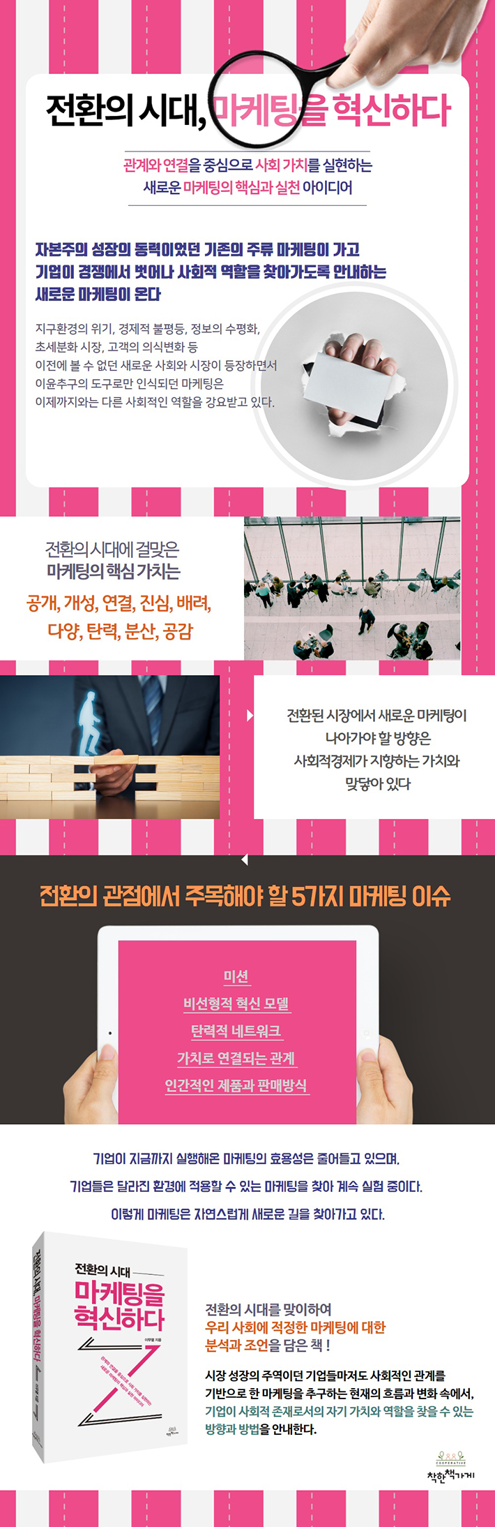 Áø½ÇÀº °æÁ¦¼ºÀåÀÇ ½Ã±â¸¦ Áö³ª¸ç ¼º¼÷ÇØÁø, ÀÌÁ¦±îÁö ´©±¸µµ °æÇèÇÏÁö ¸øÇß°í ¿¹ÃøÇϱ⠾î·Á¿î ½ÃÀå¿¡ ÀûÀÀÇÏ·Á´Â ¸¶ÄÉÆÃ ¸ðµ¨ ¾È¿¡ ÀÖ¾ú½À´Ï´Ù. ±×·¡¼ ¡®Àüȯ¡¯¿¡ ÁÖ¸ñÇÏ¿© Ã¥À» ¾²±â·Î Çß½À´Ï´Ù.