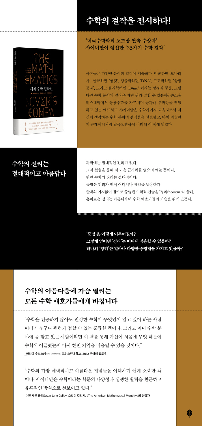 ¡°¼öÇÐÀÇ °¡Àå ¸Å·ÂÀûÀÌ°í ¾Æ¸§´Ù¿î °³³äµéÀ» ÀÌÇØÇϱ⠽±°Ô ¼ÒÈÇÑ Ã¥ÀÌ´Ù. »þÀ̳ʸ¸Àº ¼öÇÐÀ̶ó´Â Çй®ÀÇ ´Ù¾ç¼º°ú »ý»ýÇÑ È°·ÂÀ» Ä£±ÙÇϰí À¯È¤ÀûÀÎ ¹æ½ÄÀ¸·Î ¼±º¸À̰í ÀÖ´Ù.¡±