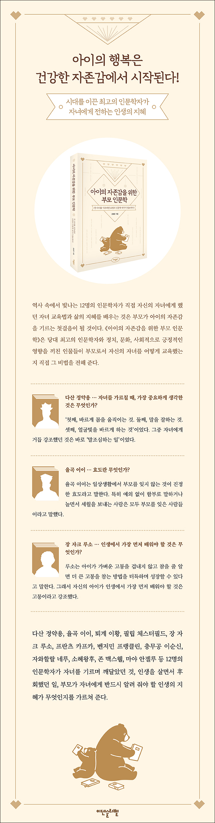 Àú¼·Î´Â 2014³â ¼¼Á¾µµ¼ ±³¾ç ºÎ¹® ¿ì¼ö µµ¼·Î ¼±Á¤µÈ ¡¶³» ¾ÆÀ̸¦ ¹Ù²Ù´Â ¾ÆºüÀÇ ¸»¡·, Àμº±³À°ÁøÈï¹ýÀÇ ½ÃÇà¿¡ µû¸¥ ±¸Ã¼ÀûÀÎ Àμº±³À° ¼Ö·ç¼ÇÀ» Á¦½ÃÇÑ ¡¶ÇÏ·ç 10ºÐ, µû¶æÇÑ ±³°¨ ¾ÆºüÀÇ Àμº±³À°¡·, »çÃá±â ¾ÆÀ̵é°úÀÇ ½ÇÁúÀû ´ëȹýÀ» ´Ù·é ¡¶Àڳడ »óó¹ÞÁö ¾Ê´Â ºÎ¸ðÀÇ ¸»Åõ¡· µî ºÎ¸ð¿Í ÀÚ³àÀÇ °ü°è, û¼Ò³âµéÀÇ ÀÚÁ¸°¨ Çâ»óÀ» À§ÇØ ÇÊ¿äÇÑ ¿©·¯ ±ÇÀÇ Ã¥ÀÌ ÀÖ°í ´Ù¼öÀÇ ÀÚ³à ±³À° °¿¬À» ÇÏ¿´´Ù. ¶ÇÇÑ 15¸¸ ºÎ°¡ ³Ñ°Ô ÆÇ¸ÅµÇ¸é¼ 2017³â ¿¹½º24 ¿ÃÇØÀÇ Ã¥À¸·Î ¼±Á¤µÈ ¡¶¸ðµç °ü°è´Â ¸»Åõ¿¡¼ ½ÃÀ۵ȴ١· µî ´ëȹý Ã¥À» ½Ê ¿©±Ç ³Ñ°Ô ½è´Ù.