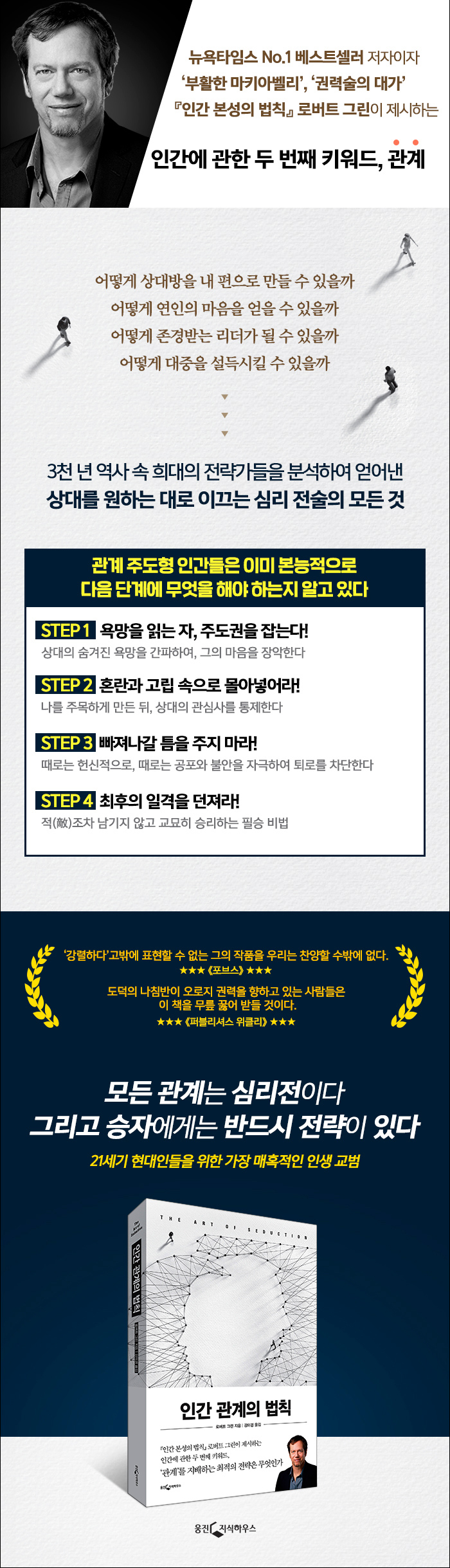 ·Î¹öÆ® ±×¸°Àº¡¶±Ç·ÂÀÇ ¹ýÄ¢ The 48 Laws of Power¡·(1998) ¡¶À¯È¤ÀÇ ±â¼ú The Art of Seduction¡·(2001) ¡¶ÀüÀïÀÇ ±â¼ú The 33 Strategy of War¡·(2006). Àü ¼¼°è ¼ö¹é¸¸ µ¶ÀÚ¿¡°Ô ³Ã¾öÇÑ Çö½ÇÀ» µ¹ÆÄÇÏ´Â Àü·«À» ¼±»çÇÑ ÀÌ Ã¥µéÀº '21¼¼±âÆÇ ¼ÕÀÚº´¹ý'À¸·Î ºÒ¸®¸ç ¿ì¸® ½Ã´ëÀÇ ¿Ïº®ÇÑ Àλý ±³°ú¼·Î ÀÚ¸®¸Å±èÇß´Ù. ·Î¹öÆ® ±×¸°Àº ͏®Æ÷´Ï¾Æ ´ëÇб³(¹öŬ¸®)¿Í À§½ºÄܽŠ´ëÇб³(¸Þµð½¼)¿¡¼ °íÀüÇÐÀ» Àü°øÇϰí, <¿¡½ºÄâÀ̾î> ÆíÁýÀÚ, ÇÒ¸®¿ìµå ½ºÅ丮 ÀÛ°¡·Î ÀÏÇß´Ù. ÀÌ·¯ÇÑ °æÇèÀ» »ì·Á ±×´Â °íÀü°ú ¿ª»ç ¼Ó Àι°°ú »ç°Ç¿¡¼ ´Ù¾çÇÑ »óȲÀ» ²ôÁý¾î³» Çö´ë»çȸ¿¡ ¸Â´Â Ä¡¹ÐÇÑ Àü·«À¸·Î À籸¼ºÇÔÀ¸·Î½á '±Ç·Â¼úÀÇ ´ë°¡'¶ó´Â ÀÚ¸®¿¡ ¿Ã¶ú´Ù. ·Î¹öÆ® ±×¸°ÀÌ ±×·Á³»´Â ¼¼°è´Â ¹«¼¿ï Á¤µµ·Î ³ÃȤÇÏ´Ù. ÇÏÁö¸¸ ±×´Â ÀÌ ºñÁ¤ÇÑ ¼¼°è ¼Ó¿¡¼ »ì¾Æ³²À» ºÒÆíÇÏÁö¸¸ Çö½ÇÀûÀÎ Àü·«µéÀ» Ã¥¿¡ ´ã¾Æ ¼¼»ó¿¡ ³»³õÀ½À¸·Î½á 'ºÎȰÇÑ ¸¶Å°¾Æº§¸®'¶ó´Â À̸§À» ¾ò¾ú´Ù.