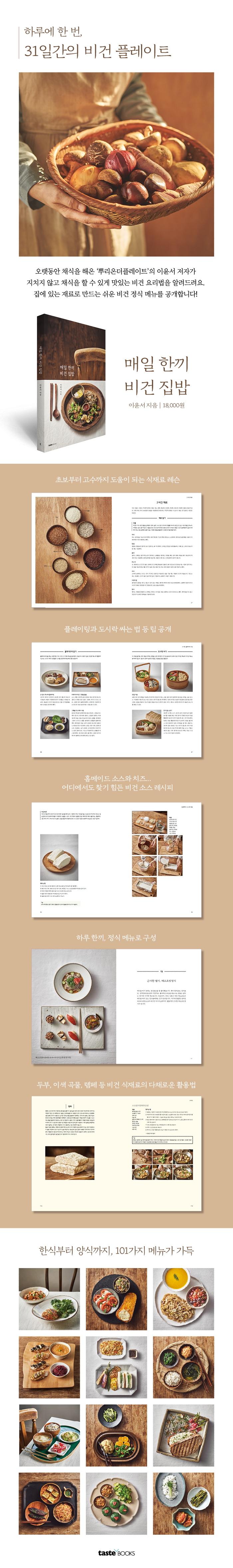¡º¸ÅÀÏ Çѳ¢ ºñ°Ç Áý¹ä¡»Àº ä½ÄÀ» Æ÷±âÇÏÁö ¾Ê°í ÀÌ¾î ³ª°¥ ¼ö ÀÖ°Ô µµ¿ÍÁÖ´Â ¿ä¸®Ã¥ÀÔ´Ï´Ù. ä½ÄÀ» Çϱâ·Î ¸¶À½ ¸Ô°í Á÷Á¢ ¿ä¸®¸¦ ÇÏ´Ù º¸¸é °ð ¸Þ´ºÀÇ ÇѰ迡 ´Ù´Ù¶ó¼ °°Àº À½½ÄÀ» ¹Ýº¹Çؼ ¸¸µé°Ô µË´Ï´Ù. ÀÌ·± ¾î·Á¿ò¿¡ ºÎµúÈ÷Áö ¾Êµµ·Ï, ¹» ¸ÔÀ»Áö °í¹ÎÇÏÁö ¾Ê°í Áñ°Å¿î ä½Ä »ýȰÀ» ÇÒ ¼ö ÀÖµµ·Ï ´Ùä·Î¿î ·¹½ÃÇǸ¦ ´ã¾Ò½À´Ï´Ù. ÀÌ Ã¥Àº ä½Ä, ±× Áß¿¡¼µµ ¾ö°ÝÇÑ ºñ°Ç ¿ä¸®¸¦ ¹«·Á 101°¡Áö³ª Á¦¾ÈÇÕ´Ï´Ù. ä½Äµµ ½ÇõÇϱâ Èûµçµ¥ ´Þ°¿, À¯Á¦Ç°À» ¸ÔÁö ¾Ê´Â ºñ°ÇÀº ´õ ÈûµéÁö ¾ÊÀ»±î, ¼±ÀÔ°ßÀº °®Áö ¸¶¼¼¿ä. ¿ì¸®°¡ ÈçÈ÷ ¸Ô´Â Àç·á·Î ¸¸µå´Â Á¢±Ù¼º ÁÁÀº ºñ°Ç ¿ä¸®¸¸À» ¼±º°ÇßÀ¸´Ï±î¿ä. ·¹½ÃÇÇ ¿Ü¿¡µµ ¿ä¸®¸¦ Çϱâ Àü, ½ÄÀç·á¿Í Ȱ¿ë¹ý µî ä½ÄÀÇ ±âº»À» Â÷±ÙÂ÷±Ù ¤¾îÁ༠ä½ÄÀ» ½ÃÀÛÇØº¼±î, °í¹ÎÇÏ´Â Ãʺ¸ºÎÅÍ Ã¤½Ä °í¼ö±îÁöµµ µÎ·ç µµ¿òÀÌ µÉ °ÍÀÔ´Ï´Ù.