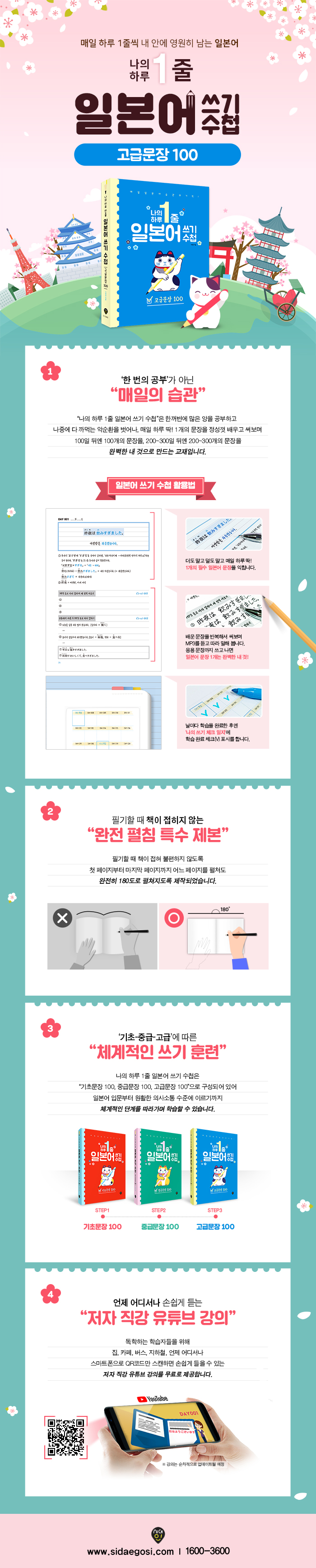 ¡®³ªÀÇ ÇÏ·ç 1ÁÙ ÀϺ»¾î ¾²±â ¼öø¡¯Àº ¡®±âÃʹ®Àå 100 / Áß±Þ¹®Àå 100 / °í±Þ¹®Àå 100¡¯À¸·Î ±¸¼ºµÈ ½Ã¸®Áî µµ¼ÀÔ´Ï´Ù. µû¶ó¼ ÀϺ»¾î¸¦ ¾Æ¿¹ ¹è¿öº» ÀûÀÌ ¾ø´Â ¿ÕÃʺ¸ ´Ü°èºÎÅÍ ½ÃÀÛÇØ Á¾±¹ÀûÀ¸·Î´Â À¢¸¸ÇÑ ÀϺ»¾î´Â ´Ù ¾Ë¾Æµè°í ±¸»çÇÒ ¼ö ÀÖ´Â ¼öÁØ¿¡ À̸£°Ô²û ü°èÀûÀ¸·Î ±¸¼ºµÇ¾î ÀÖ½À´Ï´Ù.
