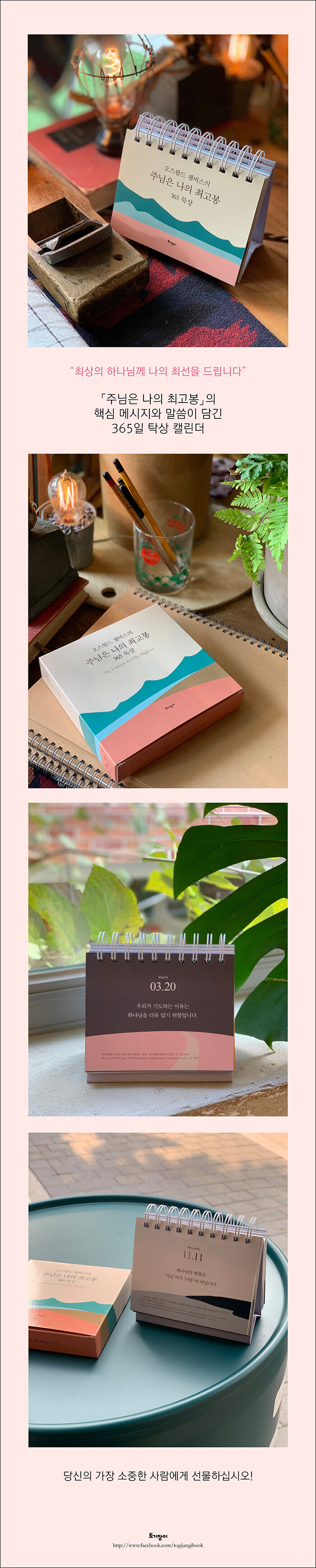¡¸ÁÖ´ÔÀº ³ªÀÇ ÃÖ°íºÀ 365 ¹¬»ó¡¹Àº Åä±âÀåÀÌ ÆíÁýÆÀÀÌ ¡¸ÁÖ´ÔÀº ³ªÀÇ ÃÖ°íºÀ¡¹ Áß¿¡¼ °¡Àå ÇÙ½ÉÀûÀÎ ¹¬»ó°ú ¸»¾¸À» ¾ö¼±ÇÏ¿© ±âȹÇß´Ù. 365ÀÏ ¸ÅÀÏ ¾ÆÄ§, ±×ÀÇ ±íÀº ¿µ¼ºÀÇ ¿ì¹°¿¡¼ »ý¸íÀ» ±æ¾î ¿Ã·Á º¸ÀÚ. ´ç½ÅÀÇ ¿µÈ¥ÀÇ °¥ÁõÀÌ ÇØ¼ÒµÇ°í ÁÖ´Ô°ú ±íÀÌ »ç¶û¿¡ ºüÁö°Ô µÉ °ÍÀÌ´Ù. ¶ÇÇÑ ´ç½ÅÀÌ °¡Àå »ç¶ûÇÏ´Â »ç¶÷µé, °¡Á·À̳ª Ä£±¸¿¡°Ô ÀÌ Ã¥À» ¼±¹°ÇÑ´Ù¸é, 1³âÀ» °¡Àå ¼ÒÁßÇÏ°Ô »ì¾Æ°¥ ¼ö ÀÖ´Â ºñ°áÀ» ¼±¹°ÇÏ°Ô µÉ °ÍÀÌ´Ù.