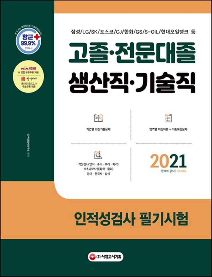 °íÁ¹.Àü¹®´ëÁ¹/»ý»êÁ÷.±â¼úÁ÷ ÀÎÀû¼º°Ë»ç Çʱâ½ÃÇè(±âÃʰúÇÐ/¿µ¾î/Çѱ¹»ç/»ó½Ä)(2021) SDÀû¼º°Ë»ç¿¬±¸¼Ò 19,800¿ø