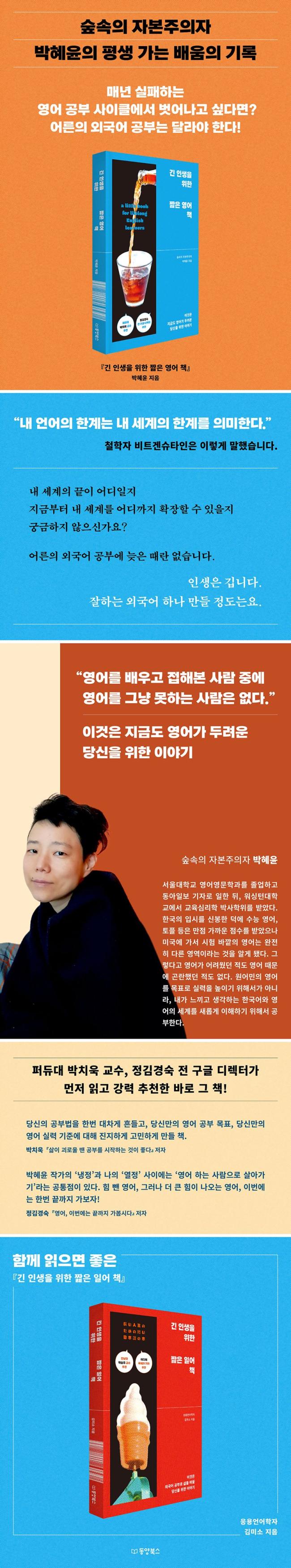 ¼¿ï´ëÇб³ ¿µ¾î¿µ¹®Çаú¸¦ Á¹¾÷ÇÏ°í µ¿¾ÆÀϺ¸ ±âÀÚ·Î ÀÏÇÑ µÚ, ¿ö½ÌÅÏ´ëÇб³¿¡¼ ±³À°½É¸®ÇÐ ¹Ú»çÇÐÀ§¸¦ ¹Þ¾Ò´Ù. ´ëÇлýÀÌ µÇ¾î ±â¼÷»ç·Î °¡¹ö¸° ¾ð´Ï¸¦ ±×¸®¿öÇÏ´Â ÁßÇлý µÑ°¿Í ³²Æí°ú ÇÔ²² ½Ã¾ÖƲ¿¡¼ ÇÑ ½Ã°£ ¶³¾îÁø ½Ã°ñ¿¡¼ »ê´Ù. Çѱ¹ÀÇ ÀԽø¦ ½ÅºÀÇÑ ´ö¿¡ ¼ö´É ¿µ¾î, ÅäÇà µîÀº ¸¸Á¡ °¡±î¿î Á¡¼ö¸¦ ¹Þ¾ÒÀ¸³ª ¹Ì±¹¿¡ °¡¼ ½ÃÇè ¹Ù±ùÀÇ ¿µ¾î´Â ¿ÏÀüÈ÷ ´Ù¸¥ ¿µ¿ªÀ̶ó´Â °ÍÀ» ¾Ë°Ô µÆ´Ù. ±×·¸´Ù°í ¿µ¾î°¡ ¾î·Á¿ü´ø Àûµµ ¿µ¾î ¶§¹®¿¡ °ï¶õÇß´ø Àûµµ ¾ø´Ù. Àû¾îµµ ³ª ÀÚ½ÅÀº¡¦. ´ë½Å ³» À̾߱⸦ µè´Â ¿ø¾î¹Î¿¡°Ô ±×µéÀÇ ÀÌÇØ·ÂÀÌ Àǽɽº·´´Ù´Â ÁÖÀåÀ» Ʋ¸° ¿µ¾î·Î Å¿¬ÇÏ°Ô ÀüÇϰï ÇÑ´Ù. õõÈ÷ À½¹ÌÇÏµí ¿µ¾î¸¦ ÀÐÀ¸¸ç ¿ø¾î¹ÎµéÀÇ »ç°í¹æ½Ä¿¡ ´ëÇØ »ó»óÇϱ⸦ ÁÁ¾ÆÇÑ´Ù. ¿ø¾î¹ÎÀÇ ¿µ¾î¸¦ ¸ñÇ¥·Î ½Ç·ÂÀ» ³ôÀ̱â À§Çؼ°¡ ¾Æ´Ï¶ó, ³»°¡ ´À³¢°í »ý°¢ÇÏ´Â Çѱ¹¾î¿Í ¿µ¾îÀÇ ¼¼°è¸¦ »õ·Ó°Ô ÀÌÇØÇϱâ À§Çؼ °øºÎÇÑ´Ù. ÀÌ·¸°Ô ¿µ¾î¸¦ µµ±¸·Î ²÷ÀÓ¾øÀÌ ½ÇÇèÇÏ°í ¹ß°ßÇϸç Áö³½´Ù. ¿µ¾î °øºÎ´Â Àý´ë·Î ¿µ¾î¿¡ ¸Ó¹«¸£Áö ¾Ê±â ¶§¹®ÀÌ´Ù. ÁöÀº Ã¥À¸·Î ¡º½£¼ÓÀÇ ÀÚº»ÁÖÀÇÀÚ¡» ¡ºµµ½ÃÀÎÀÇ ¿ùµç¡» ¡º¿ÀÈ÷·Á ÃÖ÷´Ü °¡Á·¡» ¡ººÎ¸ð´Â °ü°´ÀÌ´Ù¡» µîÀÌ ÀÖ´Ù.
