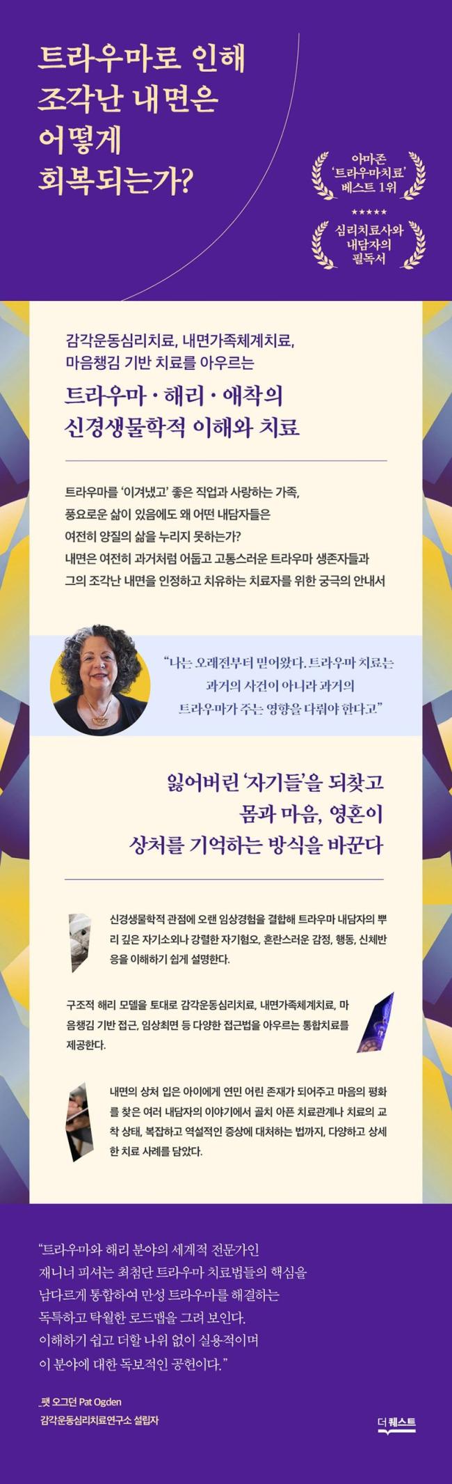¼¼°èÀûÀÎ Æ®¶ó¿ì¸¶ Ä¡·á Àü¹®°¡. 40³â ³Ñ°Ô Æ®¶ó¿ì¸¶ »ýÁ¸ÀÚµé°ú ÇÔ²²Çϸç Ä¡À¯ÀÇ ¿©Á¤À» µ½°í ÀÖ´Ù. °¨°¢¿îµ¿½É¸®Ä¡·á¿¬±¸¼ÒÀÇ ºÎ±³À°Ã¥ÀÓÀÚÀÌÀÚ ¾È±¸¿îµ¿µÐ°¨ÈÀç󸮹ý ±¹Á¦ÇùȸEMDRIA ÄÁ¼³ÅÏÆ®. º£¼¿ ¹Ý µ¥¾î ÄÝÅ©Bessel van der Kolk¸¦ »ç»çÇßÀ¸¸ç ±×°¡ Æ®¶ó¿ì¸¶ÀÇ Ä¡·á ¹× ¿¬±¸¸¦ À§ÇØ ¼³¸³ÇÑ Æ®¶ó¿ì¸¶¼¾ÅÍ¿¡¼ °»ç¸¦ ¿ªÀÓÇß´Ù. ÇϹöµå´ëÇб³ Àǰú´ëÇÐ °»ç·Î Ȱµ¿ÇßÀ¸¸ç, ¡®Æ®¶ó¿ì¸¶¿Í ÇØ¸® Ä¡·á¸¦ À§ÇÑ ´ºÀ×±Û·£µåÇùȸ¡¯ ȸÀåÀ» ¿ªÀÓÇß´Ù. ½É¸®Ä¡·áÀÚ, ÀÛ°¡, °¿¬ÀڷΠȰ¹ßÈ÷ Ȱµ¿ÇÏ¸ç ÆÖ ¿À±×´øPat Ogden°ú ¡¶°¨°¢¿îµ¿½É¸®Ä¡·á: Æ®¶ó¿ì¸¶¿Í ¾ÖÂøÀ» À§ÇÑ Ä¡·á °³ÀÔ¡·À» °øµ¿ ÁýÇÊÇß´Ù.