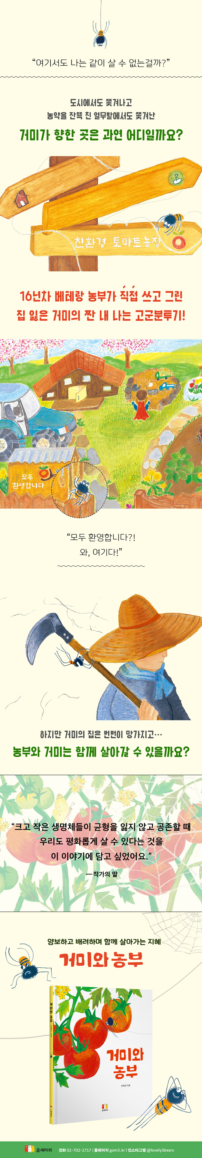 ÀÛ°¡´ÔÀº ģȯ°æ Å丶Åä ³óÀåÀ» ¿î¿µÇϸç, ¾ø¾Ö¾ß ÇÏ´Â ÁÙ¸¸ ¾Ë¾Ò´ø °ïÃæµéÀÌ ½ÇÀº °í¸¶¿î µ¿·áÀÌÀÚ ¼ÒÁßÇÑ »ý¸íÀ̶ó´Â °ÍÀ» °æÇèÇß½À´Ï´Ù. »ý¸íÀÇ ¾µ¸ð¸¦ µûÁ® ÀÍÃæ°ú ÇØÃæÀ¸·Î ³ª´©´Â Àΰ£ÀÇ ±âÁØ¿¡¼ ¹þ¾î³ª, ±×·¸°Ô ³ª´ ¼ö ¾ø´Â °¢°¢ÀÇ »ýŸ¦ ÀÌÇØÇÏ´Â °ÍÀÇ Á߿伺À» ÀüÇϰíÀÚ ÀÌ À̾߱⸦ Æì³Â½À´Ï´Ù. ÀÌ À̾߱â´Â °Å¹Ì°¡ ÁÖÀΰøÀÌÁö¸¸, ´Ù¸¥ ¾î¶² °ïÃæÀ̾ À̾߱âÀÇ °á·ÐÀº °°´Ù°í »ý°¢Çϸ鼿ä.