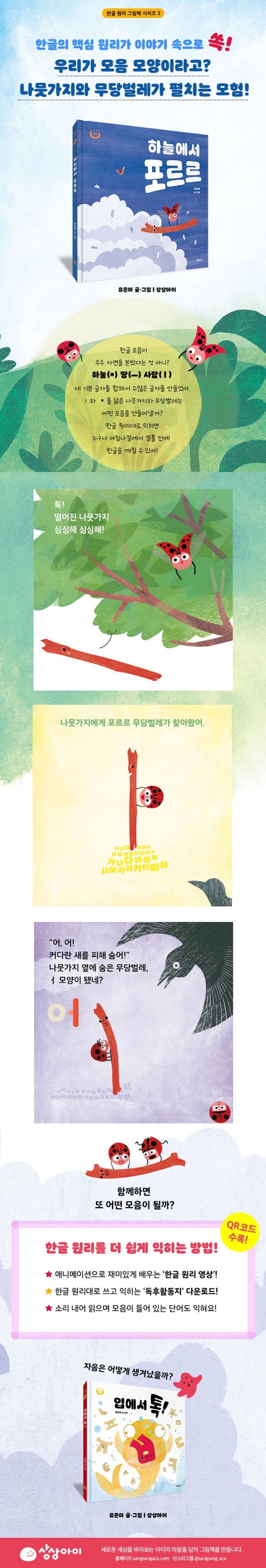 ±×¸²Ã¥ ¡¶Çϴÿ¡¼ Æ÷¸£¸£¡·´Â ÇÑ±Û Ã¢Á¦ ¿ø¸®¿¡ ±â¹ÝÇÑ ¡´ÇÑ±Û ¿ø¸® ±×¸²Ã¥¡µ ½Ã¸®ÁîÀÇ µÎ ¹øÂ° À̾߱âÀÌ´Ù. ½Å³ª´Â ¸ðÇè ¼Ó¿¡¼ ¹«´ç¹ú·¹¸¦ °¡¸¸È÷ º¸¸é ³ª¹µ°¡ÁöÀÇ ¿ÞÂÊÀ̳ª ¿À¸¥ÂÊÀ¸·Î À̵¿Çß´Ù°¡, ³ª¹µ°¡Áö¸¦ À§³ª ¾Æ·¡¿¡¼ ´ç±â°í ¹Î´Ù. ¹«´ç¹ú·¹°¡ ³ª¹µ°¡Áö¸¦ ã¾Æ¿À´Â Àå¸é¿¡¼´Â ¿À¸¥ÂÊ¿¡ ³»·Á¾ÉÀº ¹«´ç¹ú·¹ÀÇ ¸ð½À¿¡ ºø´ë¾î ¤¿ ¸ðÀ½À» ÇÔ²² º¸¿©ÁØ´Ù. ÀÚ¿¬½º·¹ ¡¤¸¦ ´àÀº ¹«´ç¹ú·¹ÀÇ À§Ä¡¿Í °³¼ö¿¡ µû¶ó ´Þ¶óÁö´Â ¸ðÀ½ÀÇ ¿ø¸®¸¦ ÀÍÈú ¼ö ÀÖ´Ù. ±×¸²Ã¥À» ¼Ò¸® ³»¾î ÀÐÀ¸¸ç ¸ðÀ½ÀÌ µé¾î°£ Ç¥ÇöÀ» ÀÍÈ÷°í, ¸ðÀ½°ú ÀÚÀ½ÀÌ ¸¸³ Ȱ¿ëÇüµµ ã¾Æº¸ÀÚ. Ã¥¿¡ QR ÄÚµå·Î ¼ö·ÏµÈ ¡®ÇÑ±Û ¿ø¸® ¿µ»ó¡¯°ú ¡®µ¶ÈÄȰµ¿Áö¡¯¸¦ Ȱ¿ëÇØ ÇÑ±Û ÇнÀµµ ÇÒ ¼ö ÀÖ´Ù.