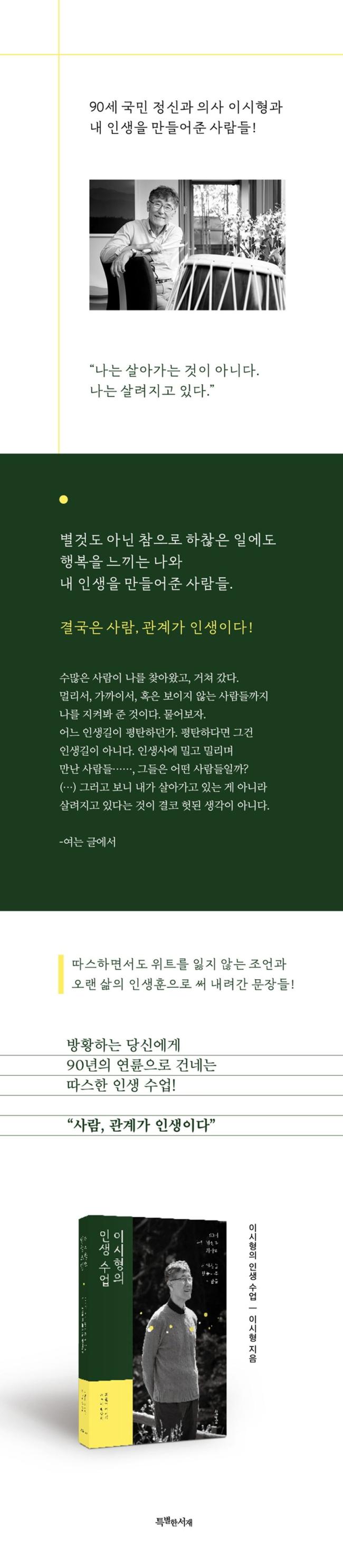 ¡ºÀ̽ÃÇüÀÇ Àλý ¼ö¾÷¡»¿¡¼´Â À̽ÃÇü ¹Ú»ç°¡ ¹é ±Ç ÀÌ»óÀÇ Ã¥À» Ãâ°£ÇÏ¸é¼ ÇÑ ¹øµµ ÇÏÁö ¾Ê¾Ò´ø ±×ÀÇ Áö³ª¿Â Àλý°ú »ç¶÷¿¡ ´ëÇÑ À̾߱⸦ ´ã¾Ò´Ù. 1ºÎ¿¡¼´Â ÀÏÁ¦°Á¡±â °æÁ÷µÈ ºÐÀ§±â ¼Ó¿¡¼ °¡Á·°ú ÇÔ²² º¸³½ ¾î¸° ½ÃÀý, ÀüÀïÀ» °ÞÀ¸¸é¼µµ µçµçÇÑ ¼¼ Ä£±¸¿Í ÀÇÁöÇÏ¸ç °ßµ®³½ û¼Ò³â±â, ¸¹Àº Àο¬À¸·Î ¾ôÈù ¹Ì±¹ ÀÎÅÏ ½ÃÀý°ú ³ë³â±â¿¡ À̸£±â±îÁö »îÀ» µ¹¾Æº¸¸ç °ü°è°¡ °á±¹ ÀλýÀ̾úÀ½À» ¸»ÇÑ´Ù. 2ºÎ¿¡¼´Â ÀλýÀ» »ì¾Æ°¡´Â µ¥ ²À ÇÑ ¹ø »ý°¢ÇØ ºÁ¾ß ÇÒ Å°¿öµå¸¦ ²Å¾Æ Àλý ¼ö¾÷ 9±³½Ã¿¡ ´ëÇÑ ÂªÀº °¡¸£Ä§À» ³Ö¾ú´Ù. 3ºÎ¿¡¼´Â ½É¸®»ó´ãÇÐÀÚ ¹Ú»ó¹Ì ±³¼ö¿Í ³ª´« ÀÎÅͺ並 ´ã¾Ò´Ù. 90³âÀÇ ¿¬·ûÀÌ ¹¯¾î³ª´Â ´äÀ¸·Î Èûµé°í ¸·¸·ÇÑ ÀλýÀ» ¾î¶»°Ô »ì¾Æ°¥ °ÍÀÎÁö °í¹ÎÇÏ´Â À̵鿡°Ô ±æÀ» Á¦½ÃÇÑ´Ù.
